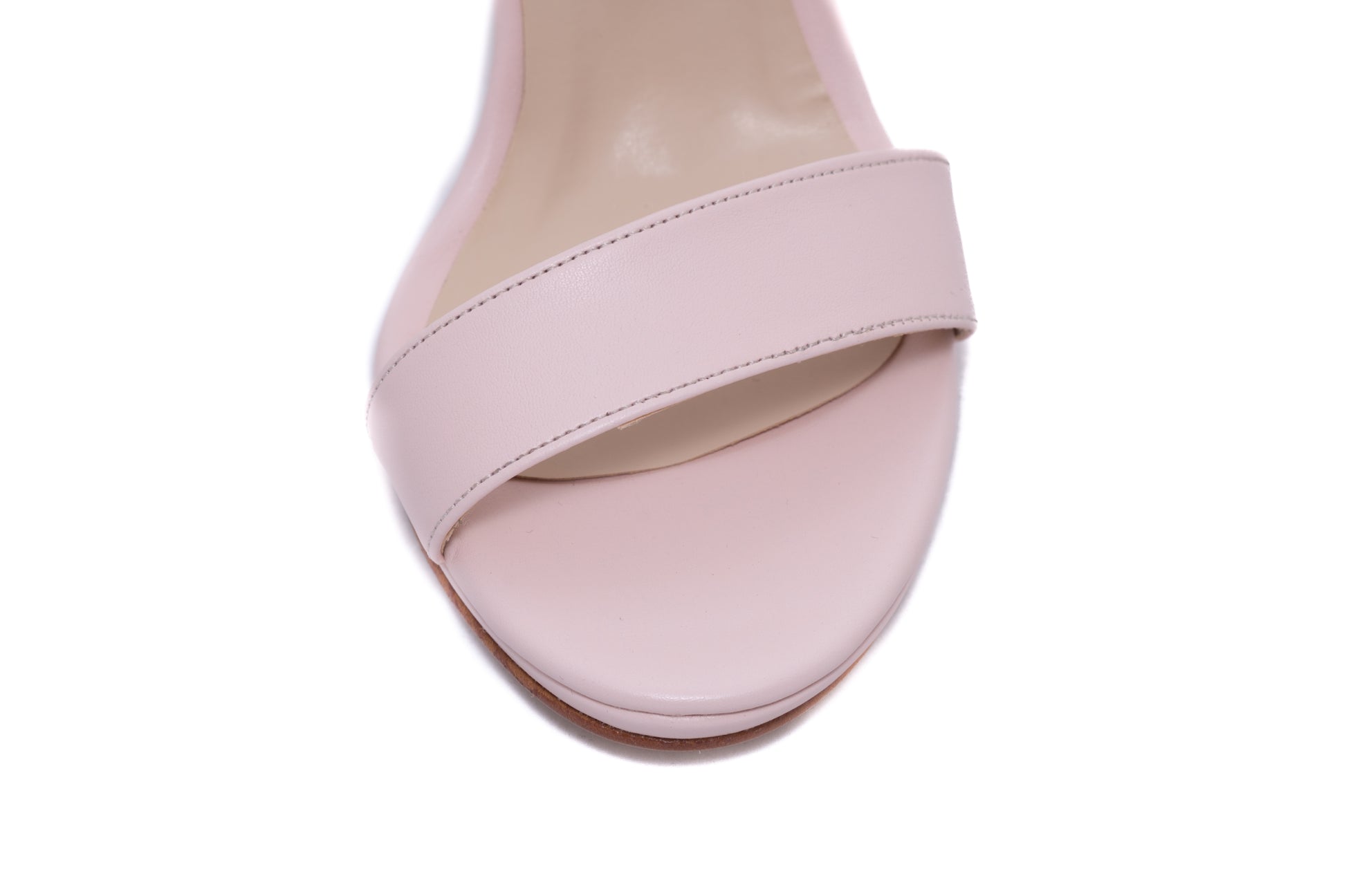 KARIN women's sandals made of quality eco-leather with a 10 cm stiletto heel. The weight of a single foot is 175 grams. The fastening is made with a thin strap that fastens above the ankle for better fixation of the foot, and in front it has a 0.5 cm platform.
