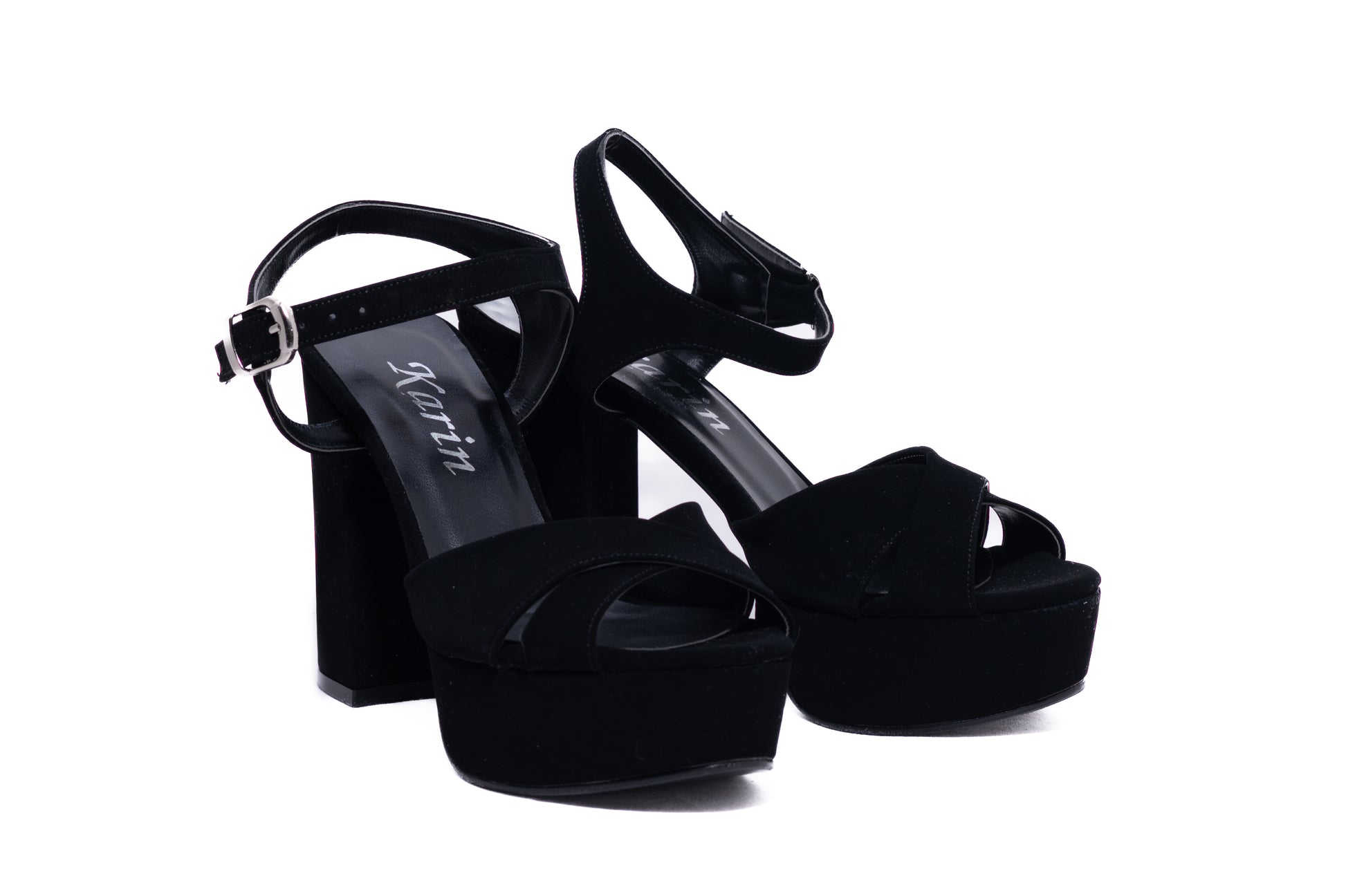 KARIN women's sandals made of quality eco-leather with a thick 10 cm heel dressed in the same color. The weight of a single foot is 285 grams. The fastening is made with a thin strap that is fastened above the ankle for better fixation of the foot, and in front it has a 3 cm platform.
