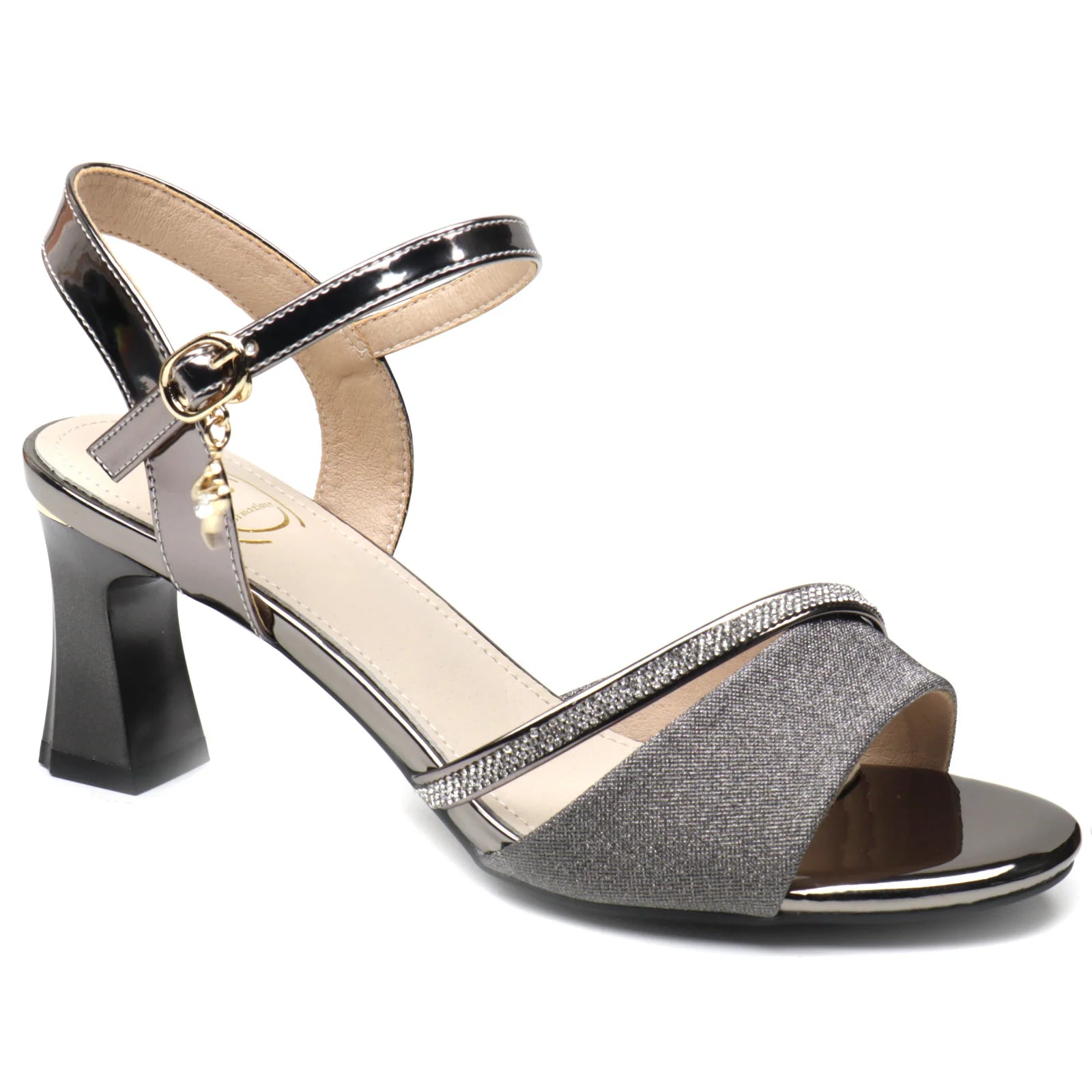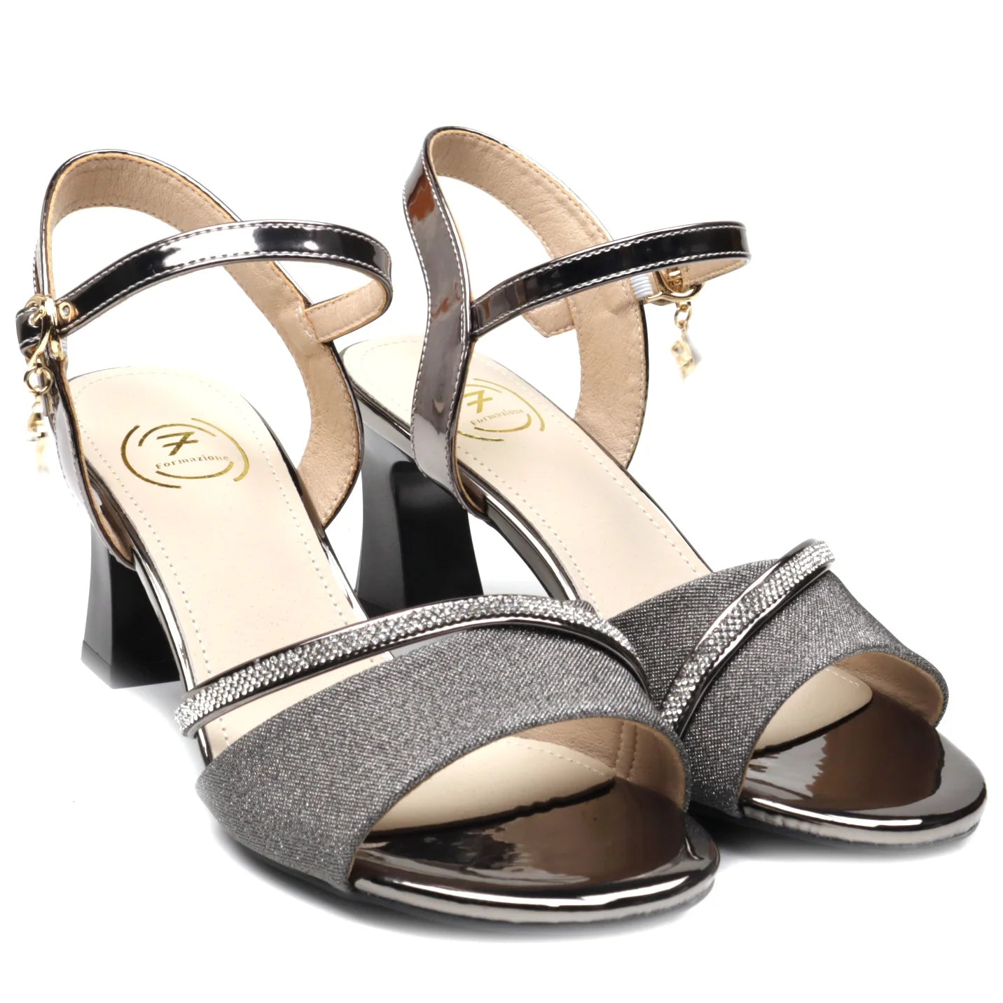 FORMAZIONE women's sandals made of premium quality eco-leather with a thin 6 cm high heel, very stable when walking, with a 0.5 cm high platform at the front that gives a smooth and comfortable inclination to the foot. The ankle is fastened with a thin strap in a fine buckle. On the back it has a bow with gorgeous crystals. Sizes from 35 to 40.