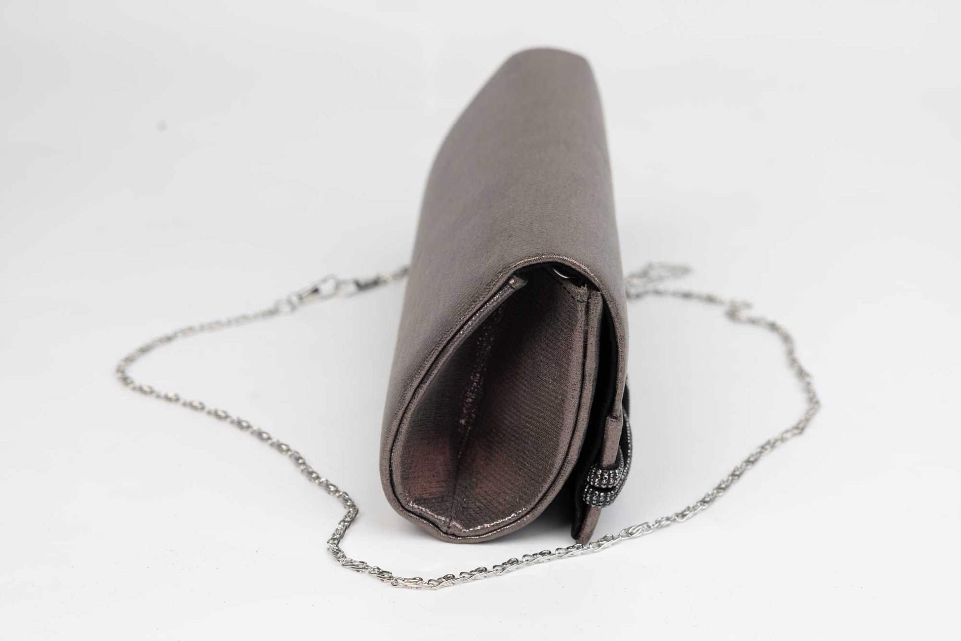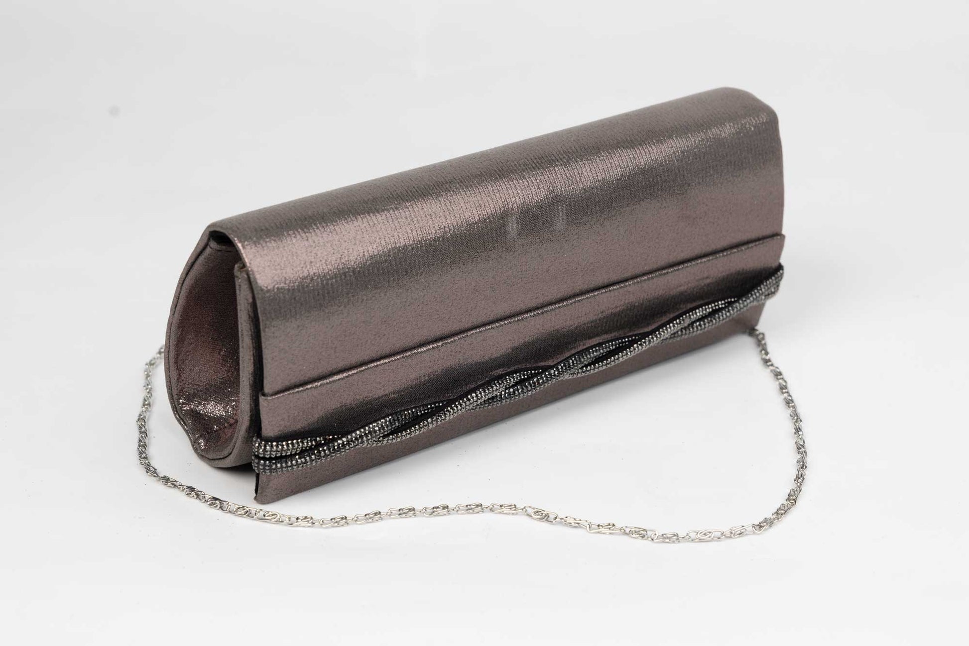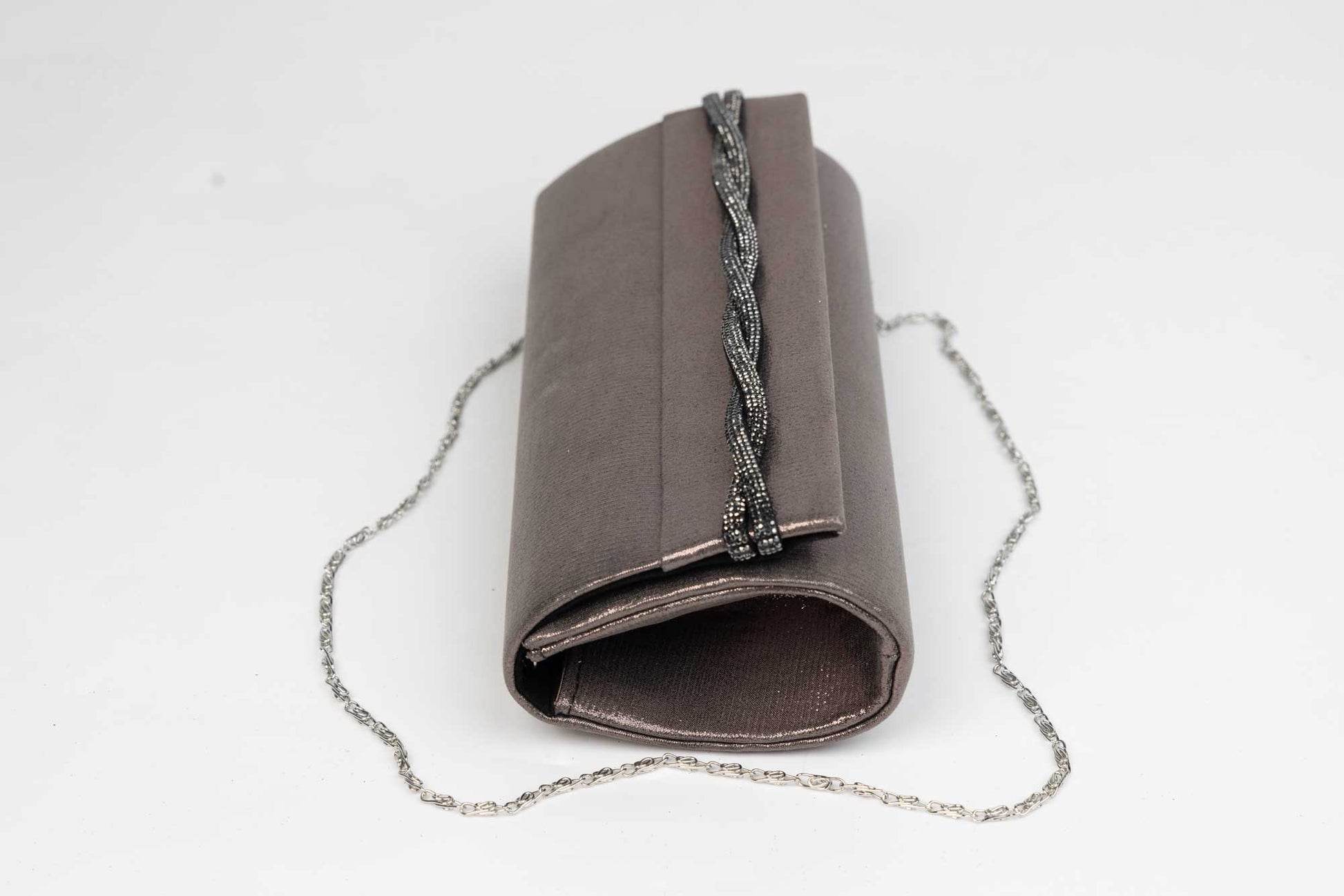 Un plic de dama de marime 23-11 cm cu efecte sclipitoare gri platina avand in dotare o curelusa lant metalice detasabile. Interiorul este unicameral (1 compartiment) si este potrivit si incapator pentru un telefon sau cosmetice. Inchiderea se face cu o clapeta metalica cu magnet in partea laterala a plicului.