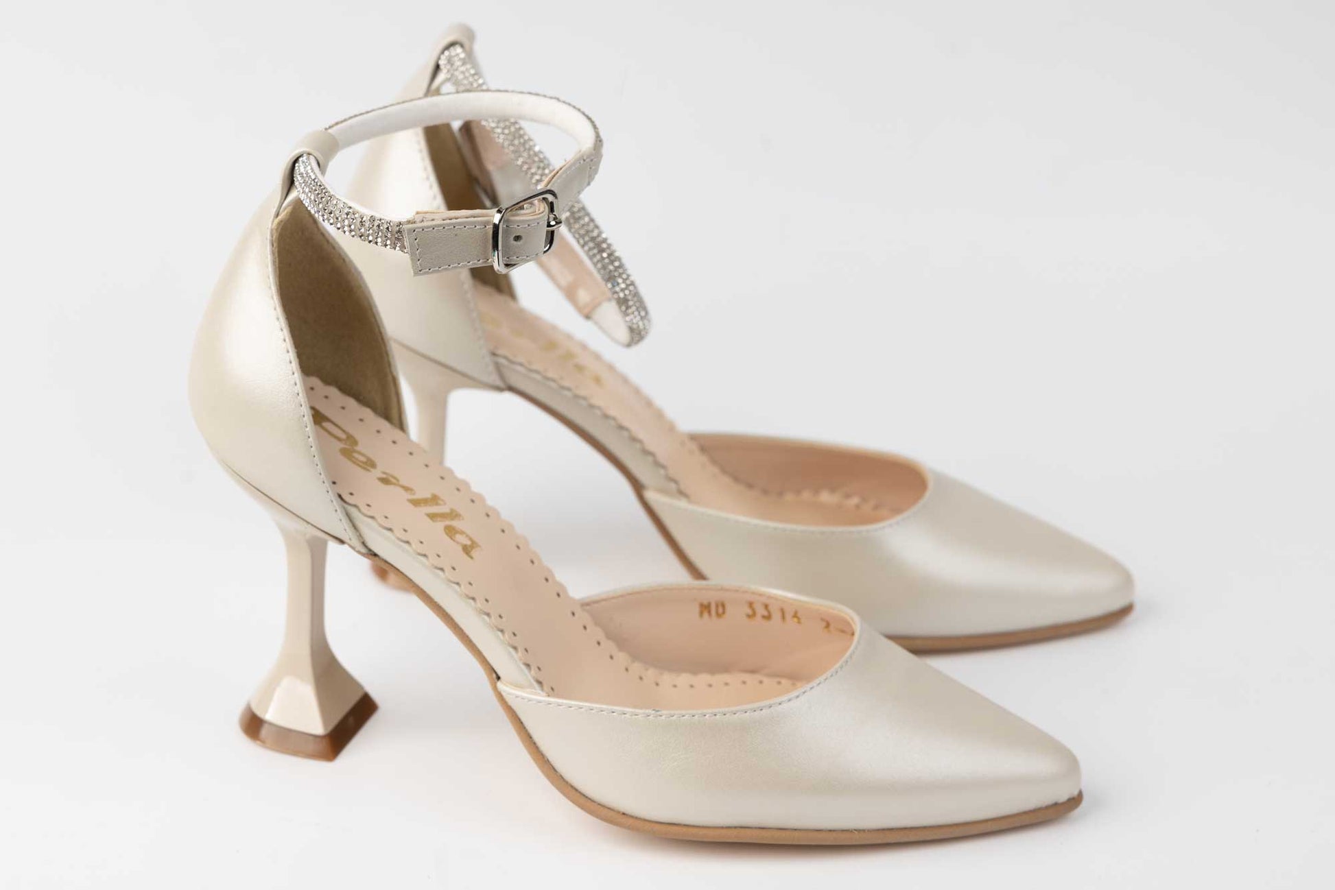 Pantofi mireasa decupați piele naturală PERLA 3314 Alb sidef