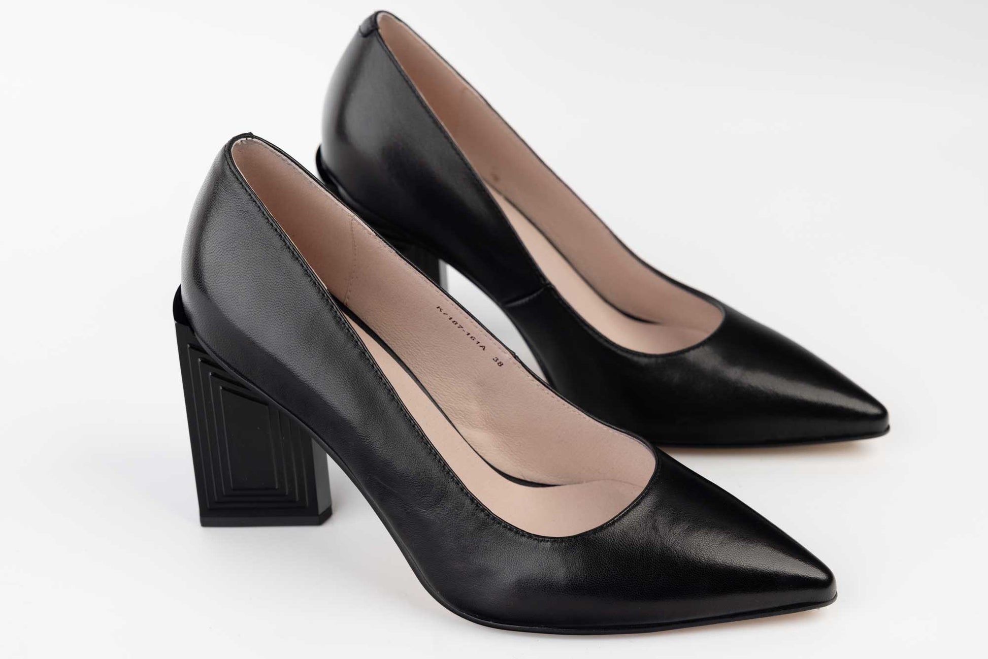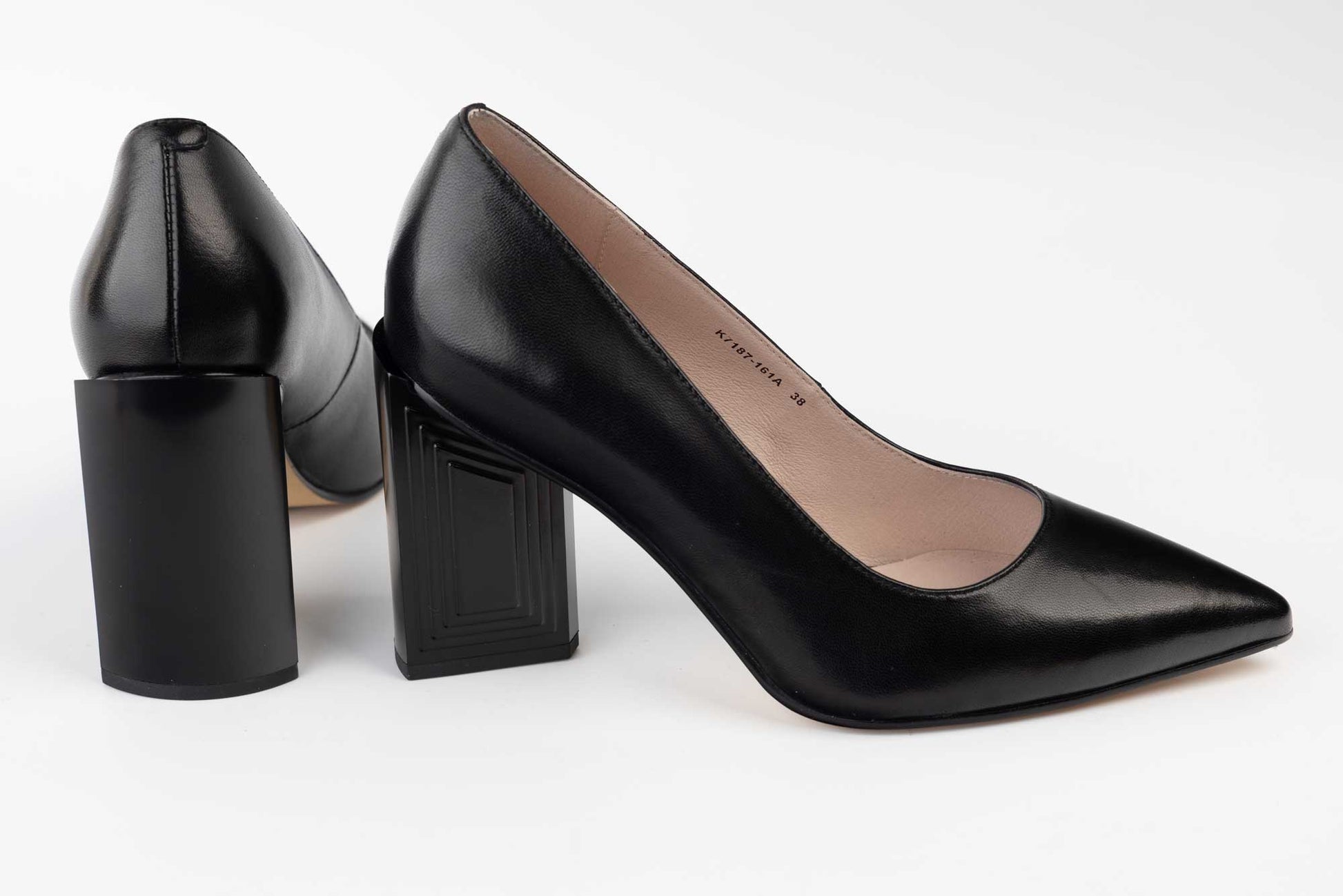 Pantofi JOSE SIMON de dama din piele naturala cu toc gros triunghi de 7,5 cm inaltime. Pielea este foarte moale si ofera maximum de confort la purtare indelungata, talpa este usoara, flexibila iar pe interior detine un brant cu memory. Greutatea unui singur picior este de 250 grame.