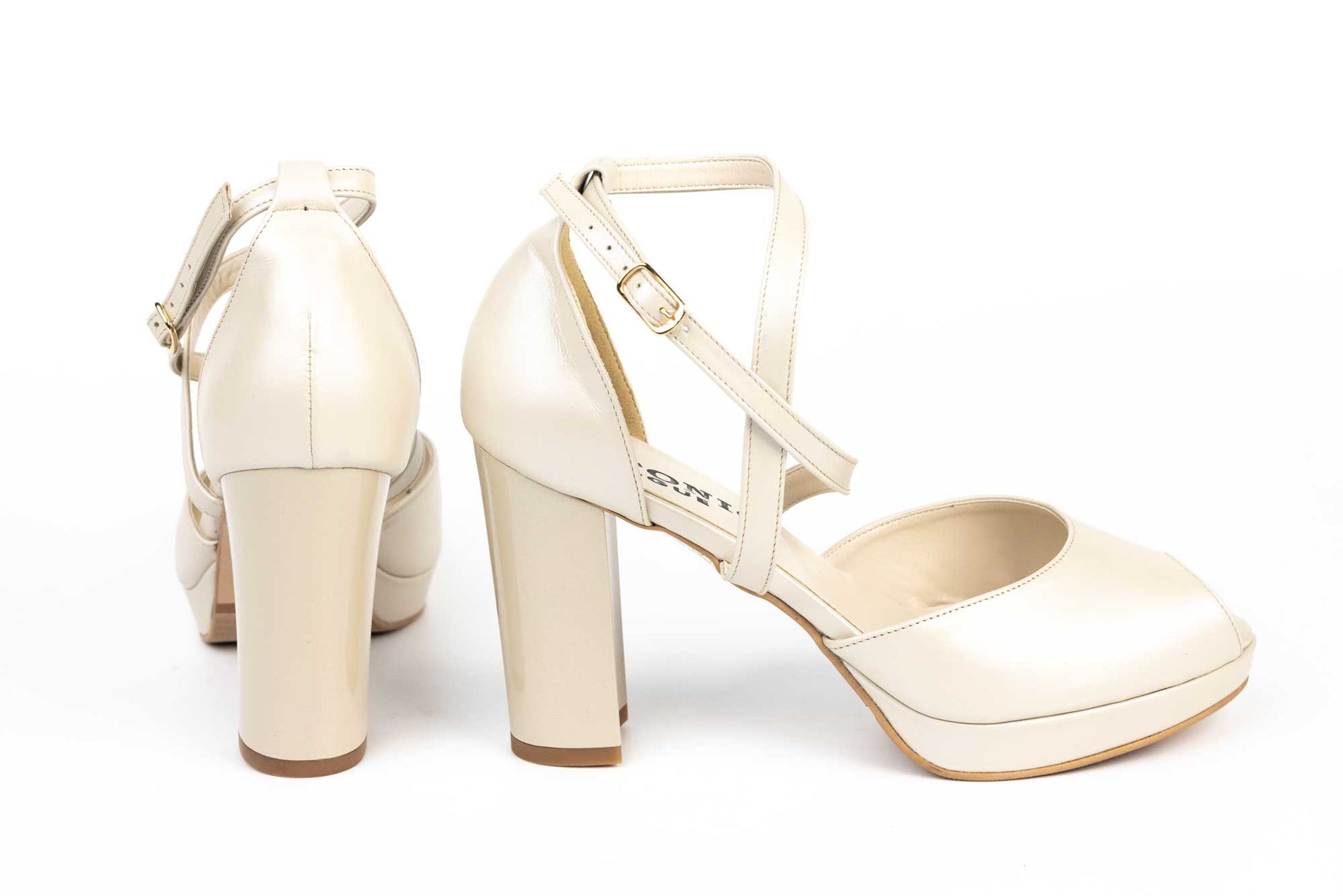 Sandale mireasa piele naturală ANTONIO 1954 bej sidef sim