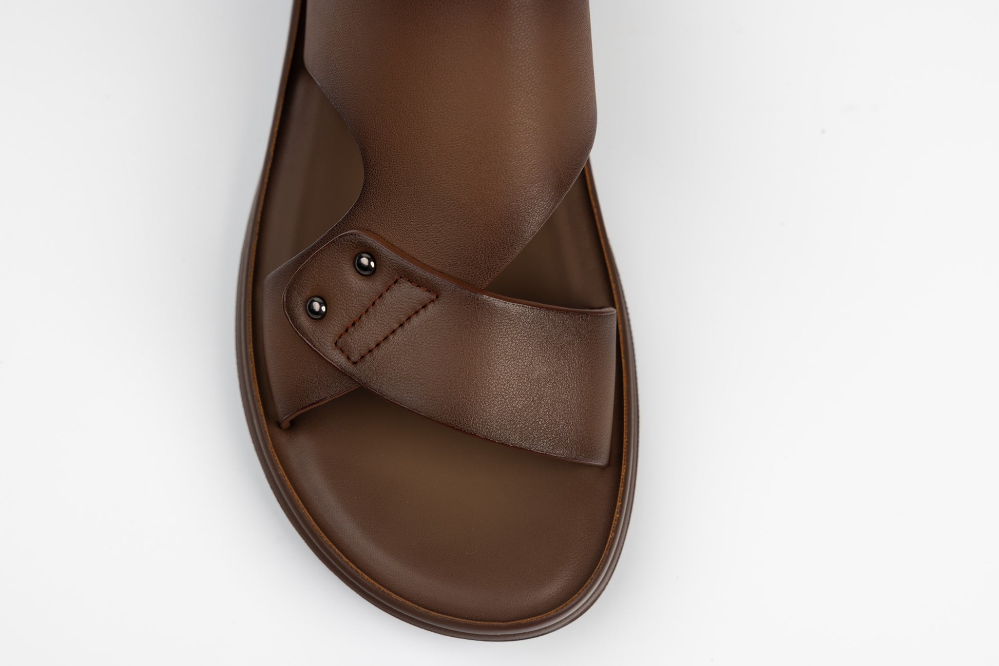 Sandale MELS de barbati din piele naturala interior si exterior cu o talpa foarte moale si elastica la care se adauga un brant memory special . Prinderea se face cu o bareta elastica in partea din spate (la calcai) dar se poate purta si gen slap daca bareta se muta pe ristul piciorului, bareta fiind mobila. Greutatea unui singur picior este 320 grame. Mărimi de la 37 pana la 40.