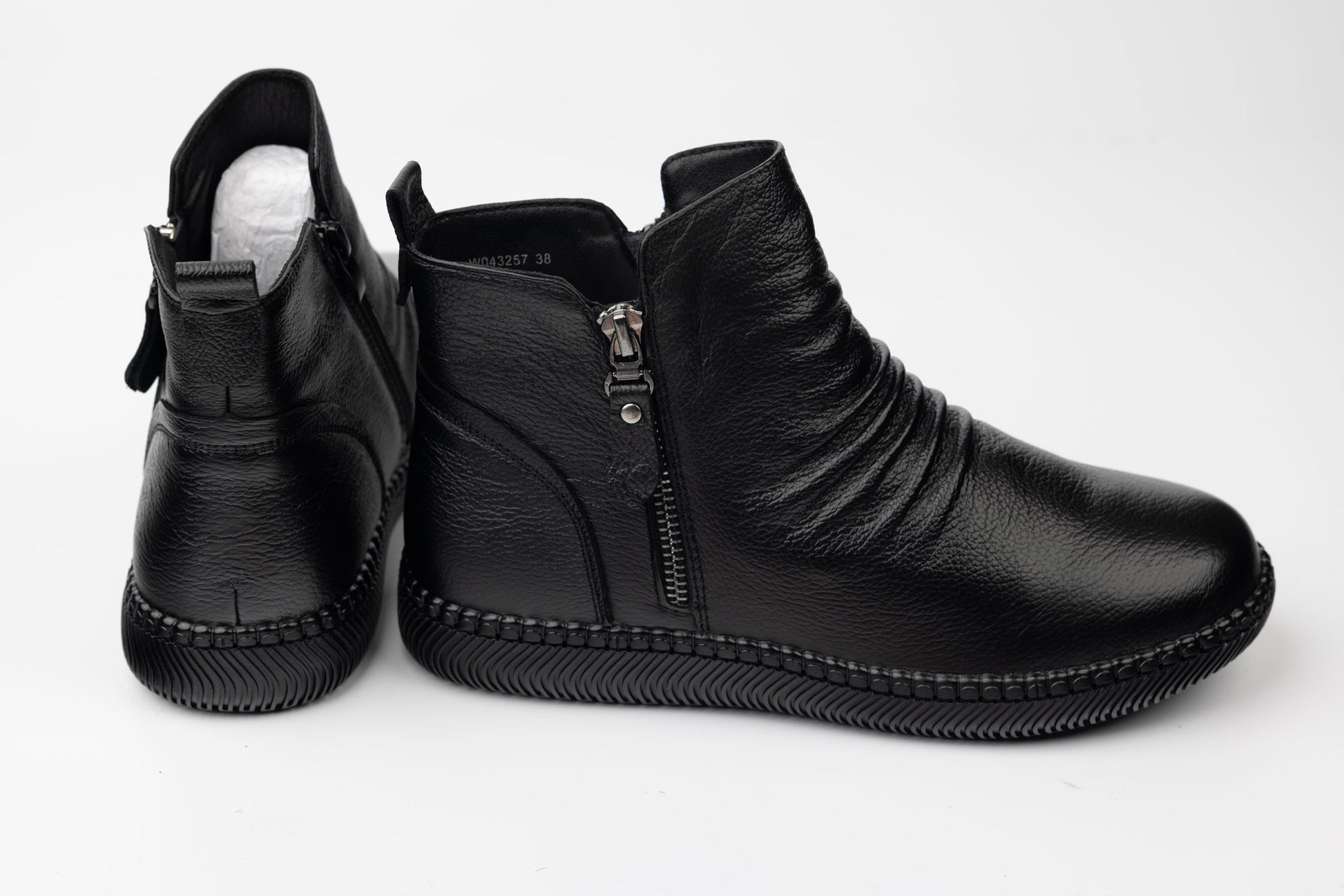 Ghete MATSTAR de dama din piele naturala moale avand 2 fermoare laterale , unul funcțional și unul decorativ . Talpa este marele secret fiindca este foarte moale si elastica avand la interior un brant cu memory foarte comod la purtare. MĂRIMI : 36-43.