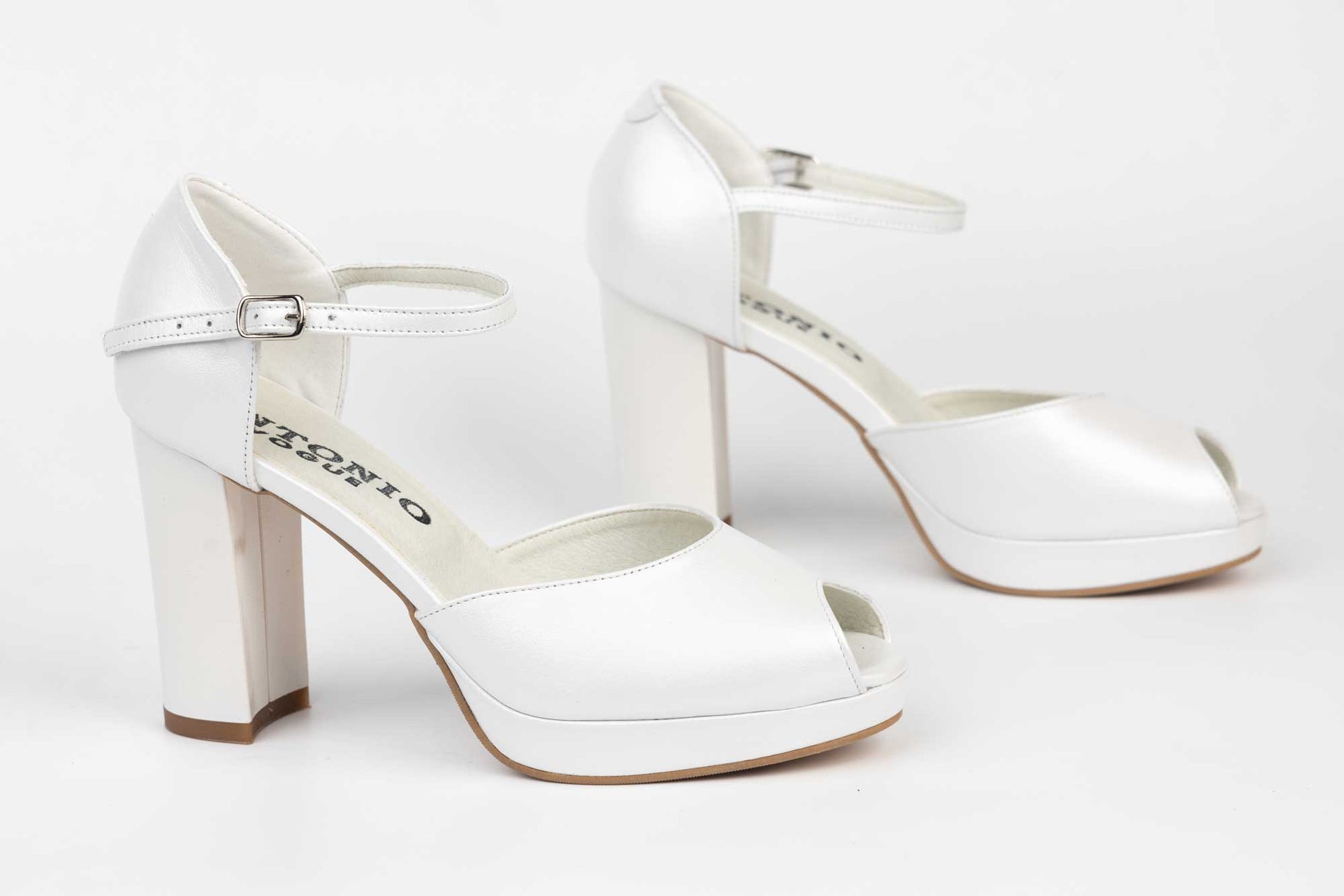 Sandale mireasa din piele naturală ANTONIO 3224 alb sidef
