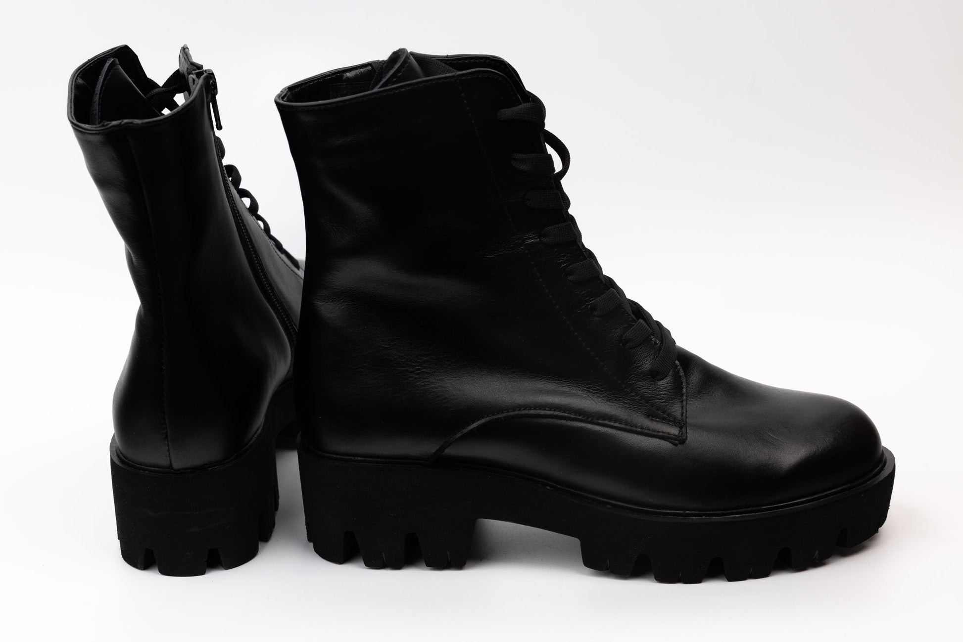 Ghete PERLA de dama din piele intoarsa naturala rezistenta la umezeala cu siret si fermoar lateral, talpa cu toc groasa zimtata antiderapanta cu varful rotund,comode si usoare. Greutatea unui singur picior este de 370 grame.