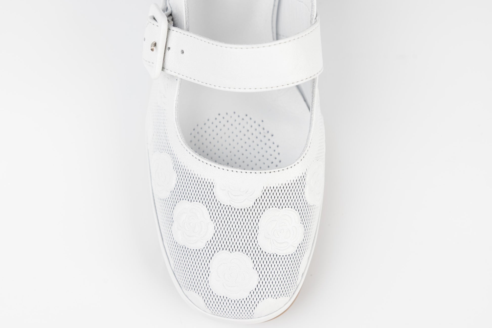 Pantofi mireasa decupați piele naturală PERLA 3314 Alb sidef