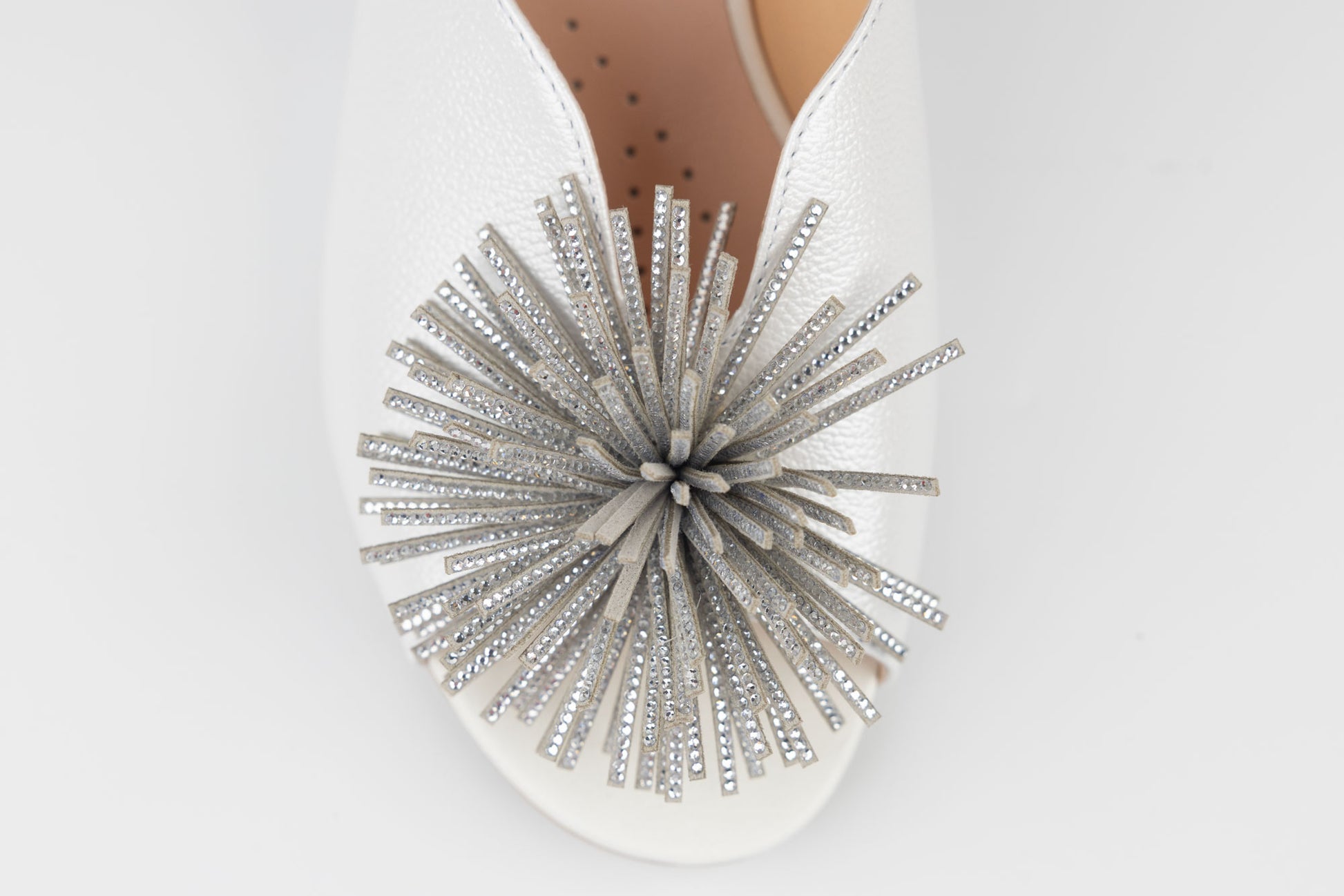 Pantofi mireasa decupați piele naturală PERLA 3314 Alb sidef