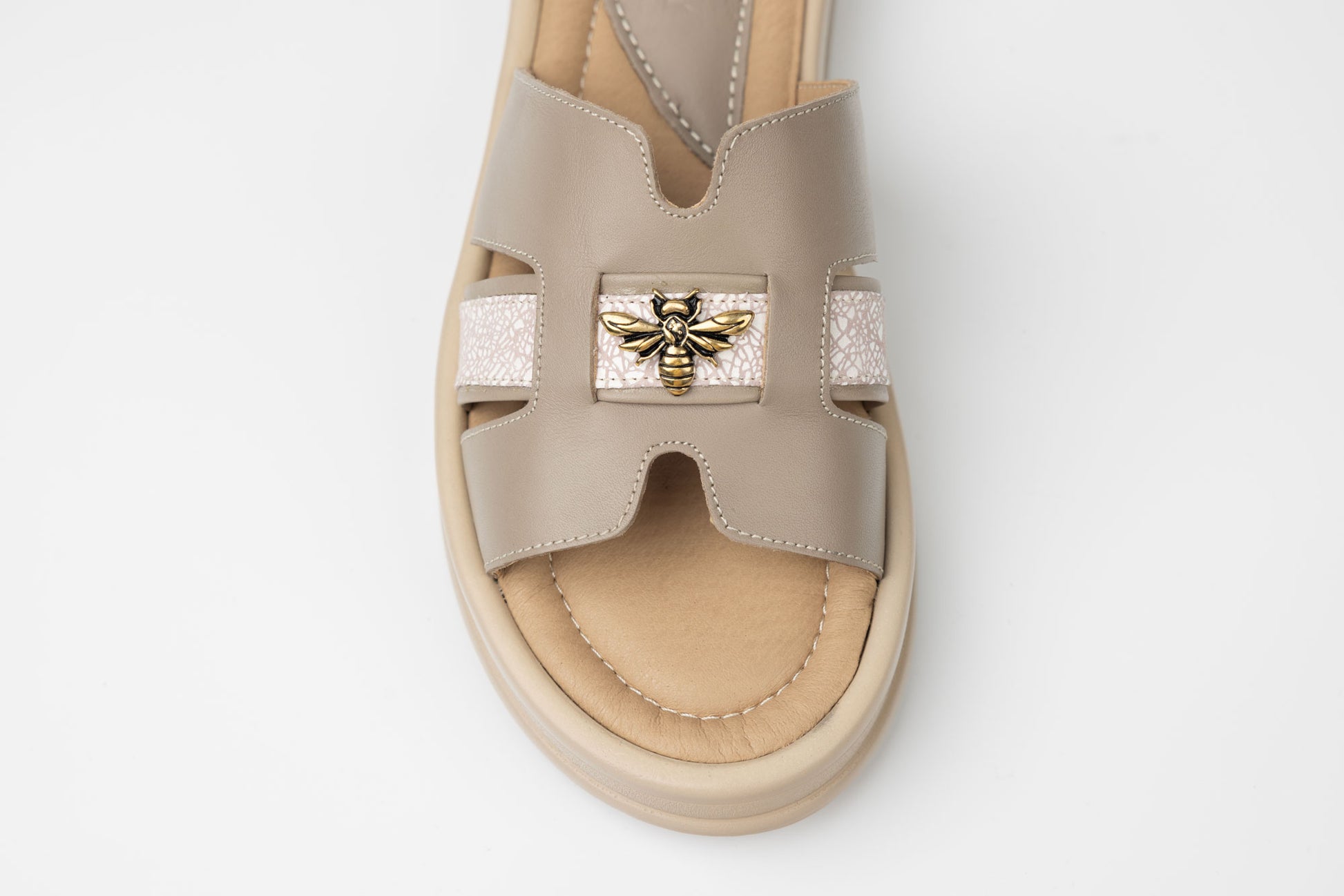 Șlapi dama DYANY din piele naturala cu talpa groasa de 2 cm captusite la interior cu piele naturala specială tip leopard. Greutatea unui singur picior este de 150 grame.