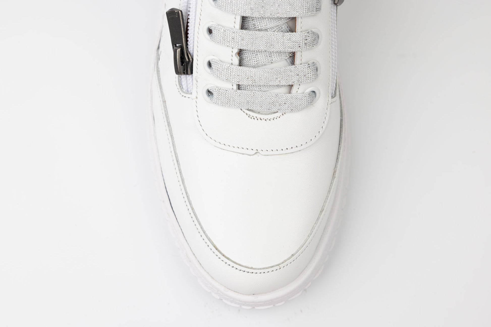 Pantofi damă piele naturală PLSD 03 Alb perforat fermoar