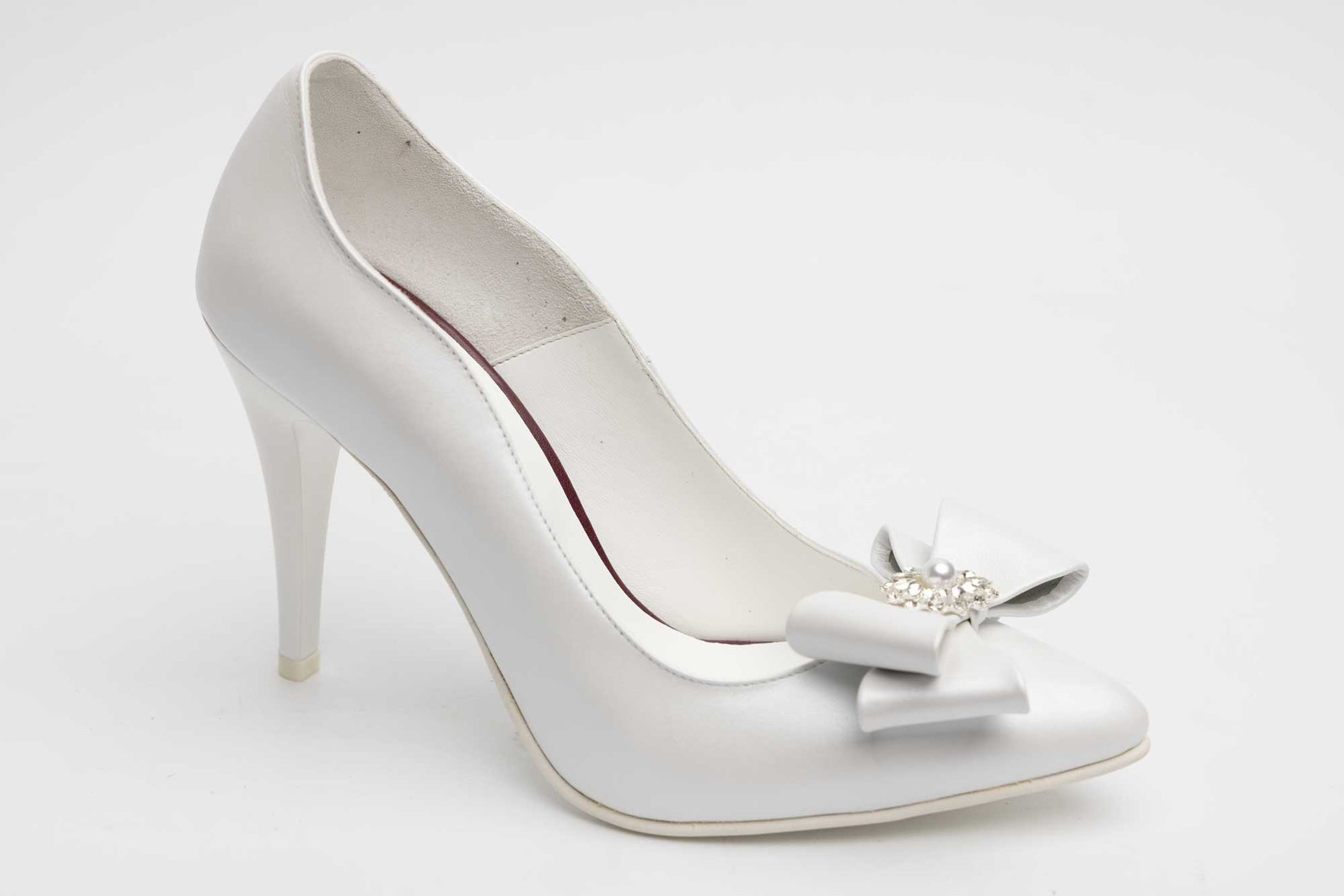 Pantofi mireasa decupați piele naturală PERLA 3314 Alb sidef