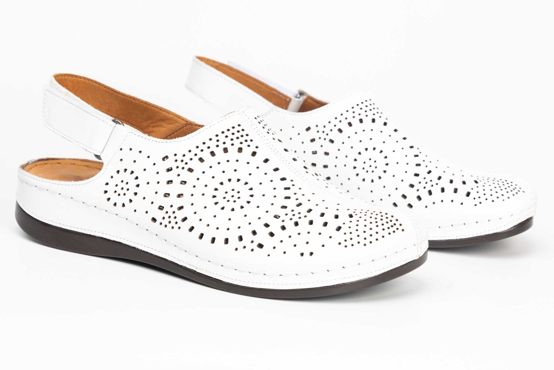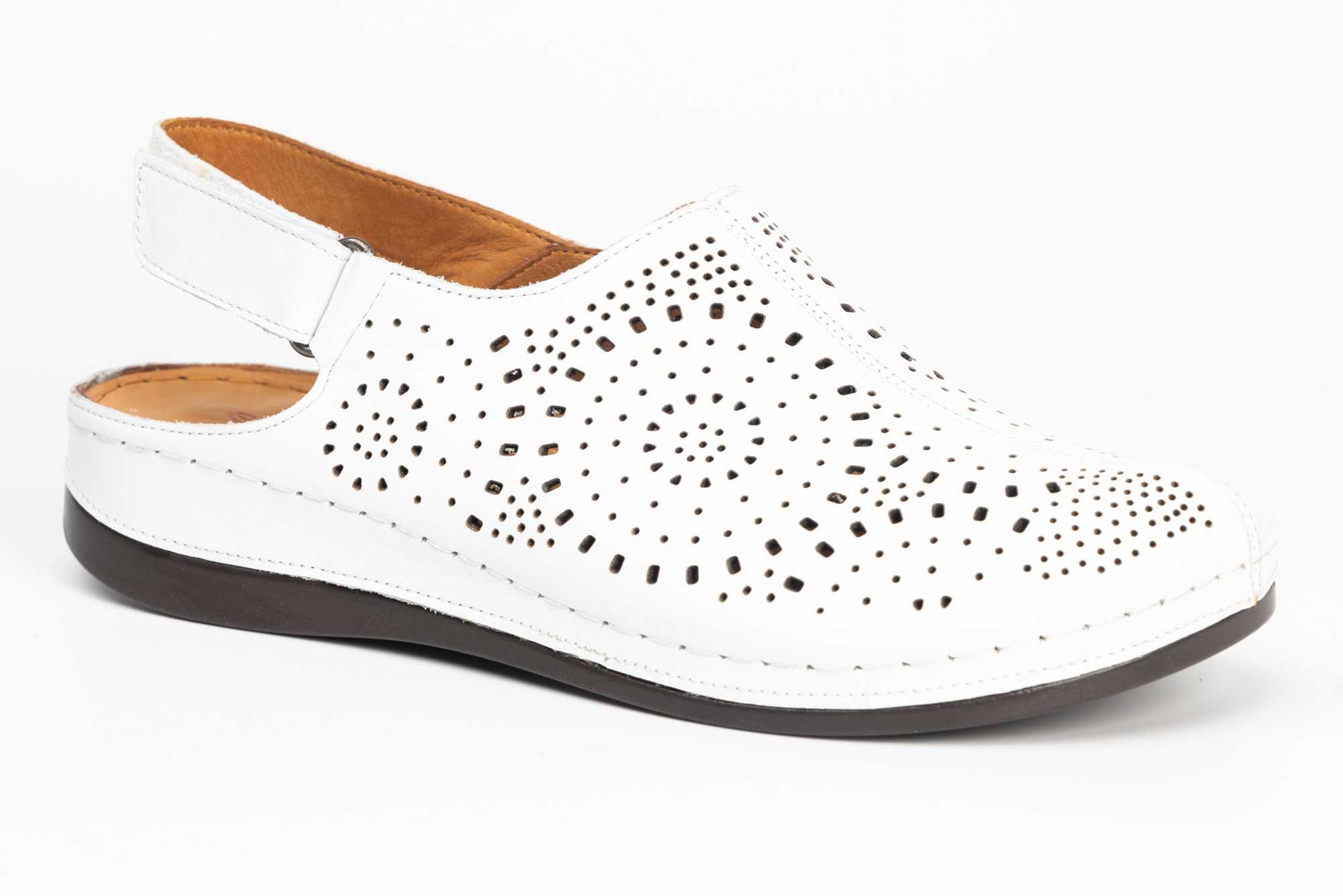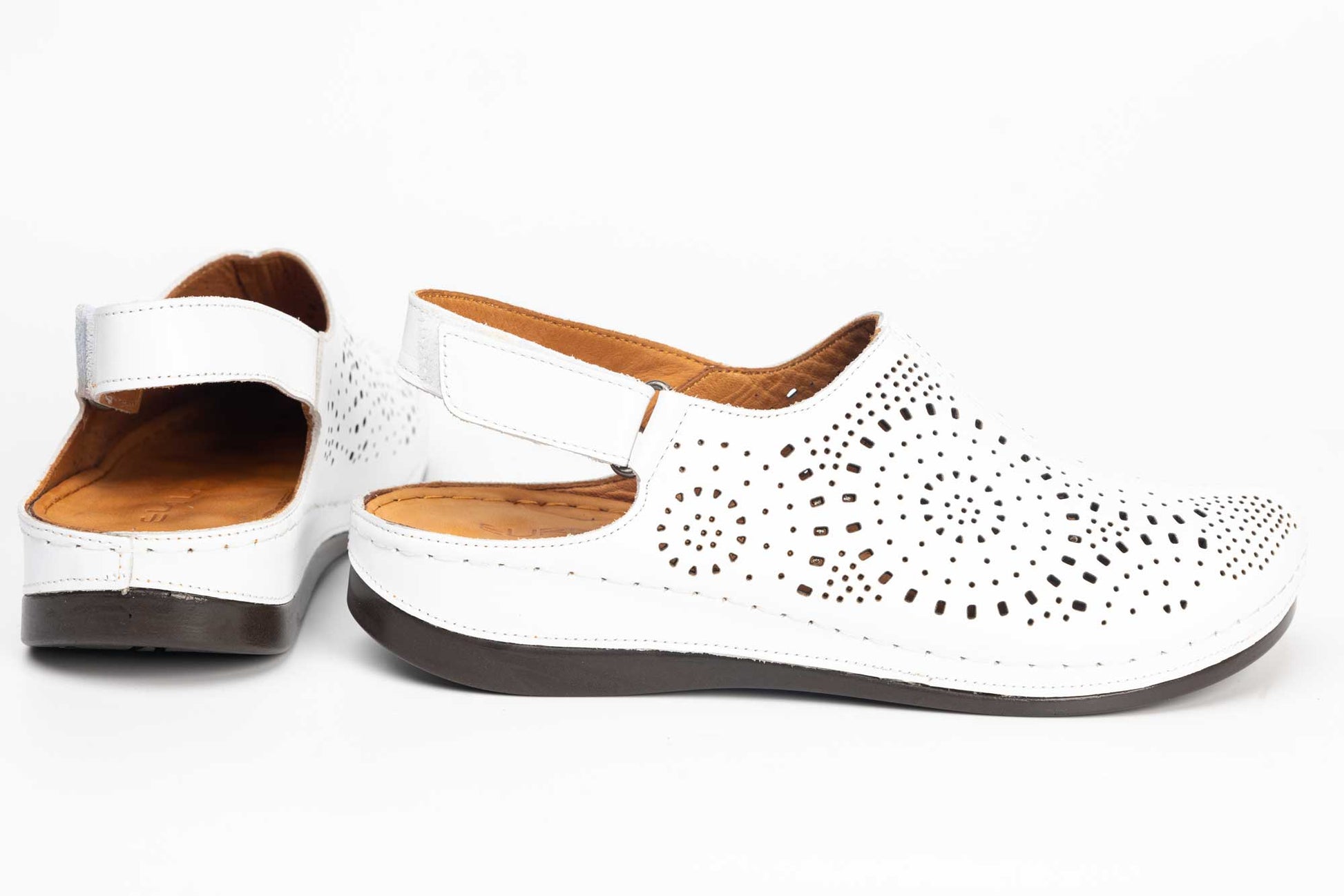 Saboti dama perforati din piele naturala LSD 322 alb