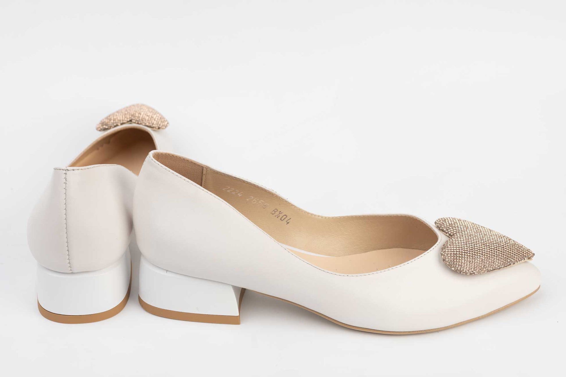 Pantofi mireasa decupați piele naturală PERLA 3314 Alb sidef