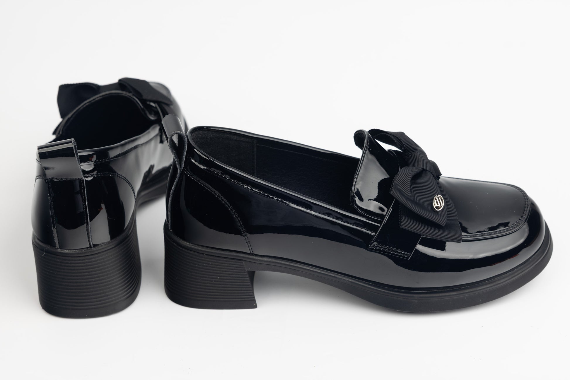 Pantofi FORMAZIONE de dama din piele naturala lăcuită cu un accesoriu tip fundiță , piele foarte moale si care ofera maximum de confort la purtare indelungata. Talpa este usoara, flexibila iar pe interior detine un brant cu memory. Mărimi de la 36 pana la 40.