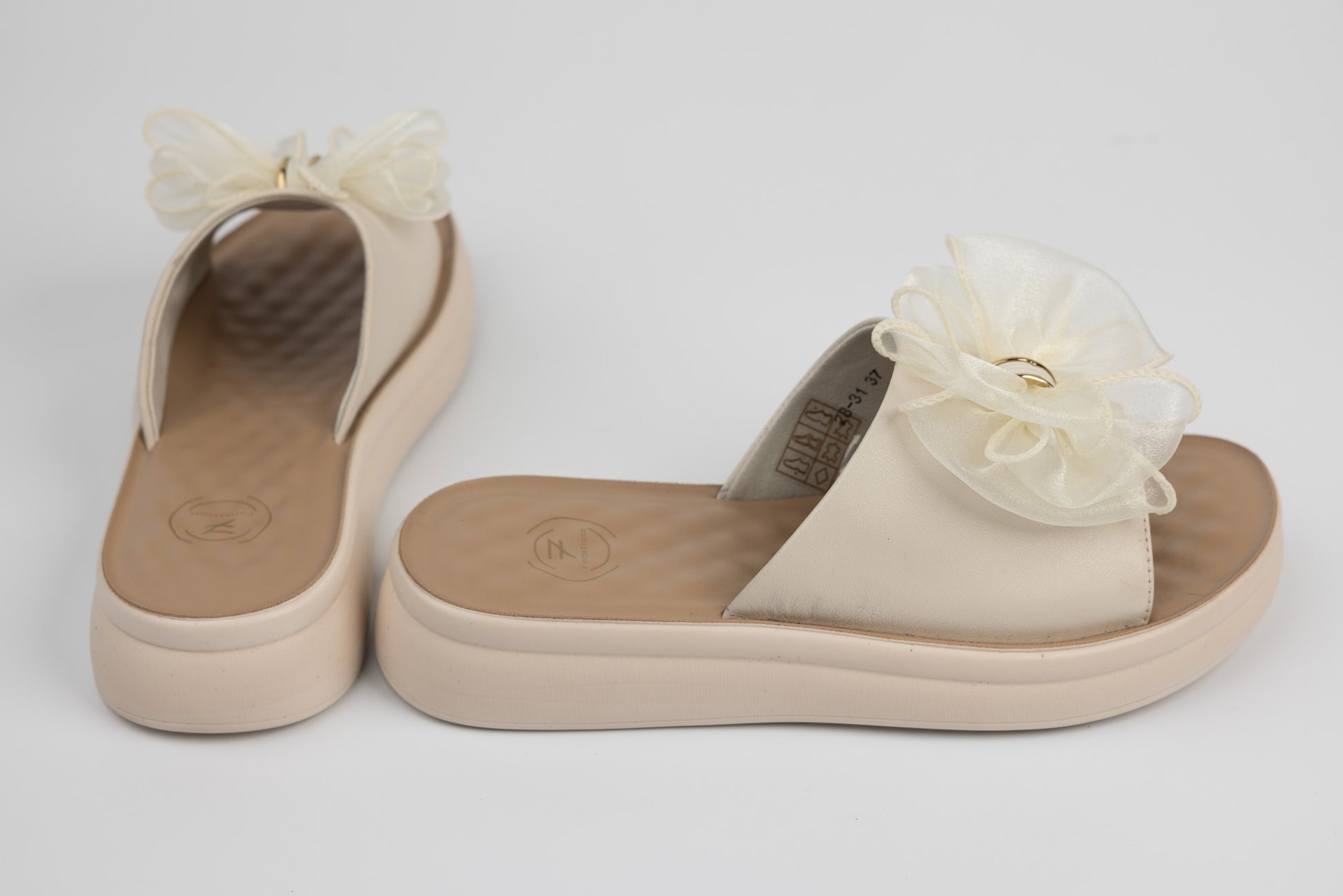 Slapi FORMAZIONE de dama din piele naturala cu fundita accesorizata cu o fundita dantelată avand talpa groasa de 3 cm foarte moale si elastica avand brantul cu burete memory facand ca acest model sa fie unul foarte apreciat si comod la purtare indelungata. Greutatea unui singur slap este de 235 grame.