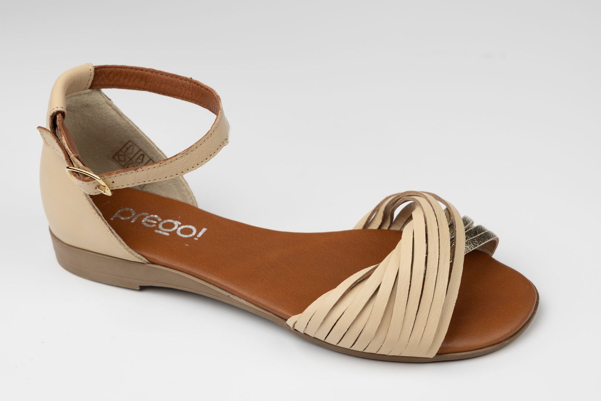 Sandale dama PREGO din piele naturala cu talpa groasa de 1 cm captusite la interior cu piele naturala avand prinderea cu o bareta cu catarama. Greutatea unui singur picior este de 150 grame. Mărimi de la 35 pana la 41.
