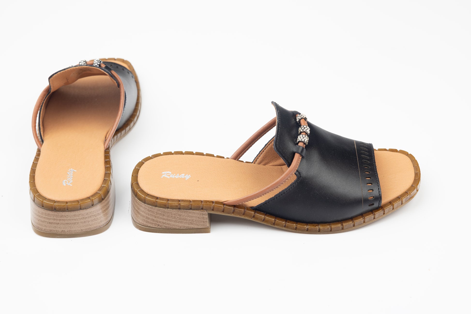 Șlapi dama RUSAY din piele naturala cu o talpa cu inaltimea de 1 cm ofera maximum de confort la purtarea lor atat in interior cat si exterior. Greutatea unui singur șlap este 190 grame.