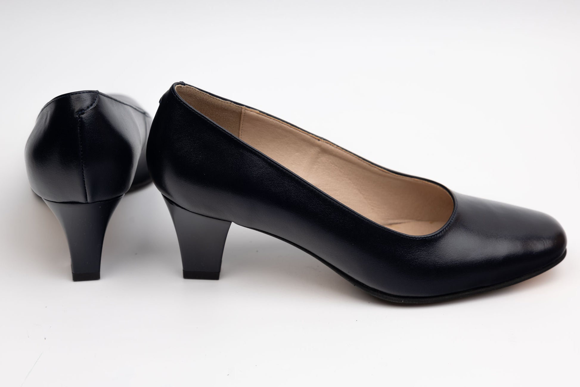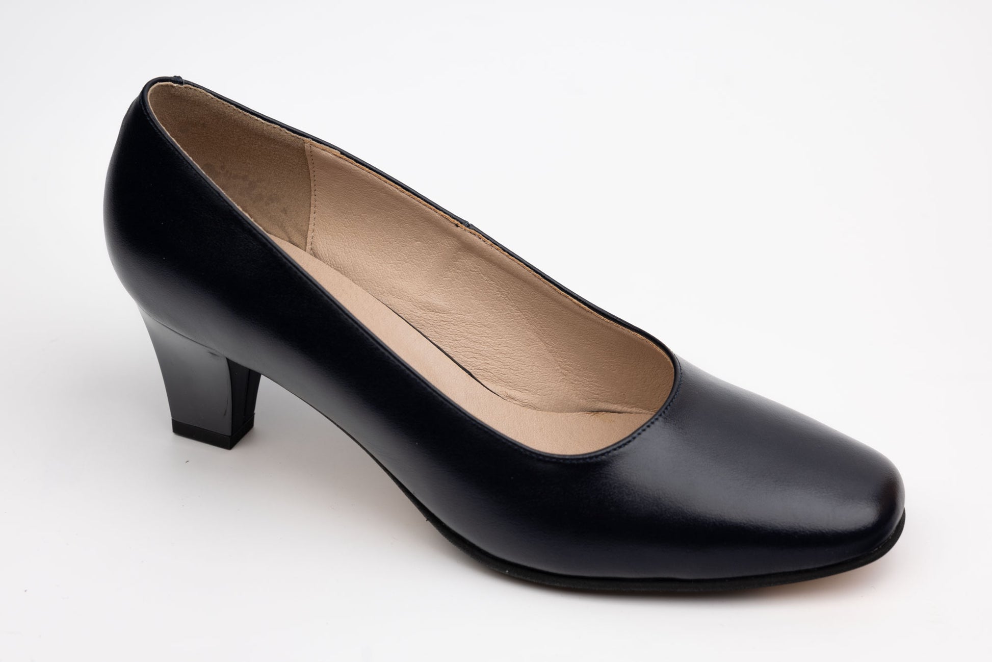 Pantofi ANTONIO de dama din piele naturala avand tocul patrat de 5 cm. Greutatea unui singur picior este de 240 grame. Recomandat pentru doamne cu picior mai lat sau cu mont.