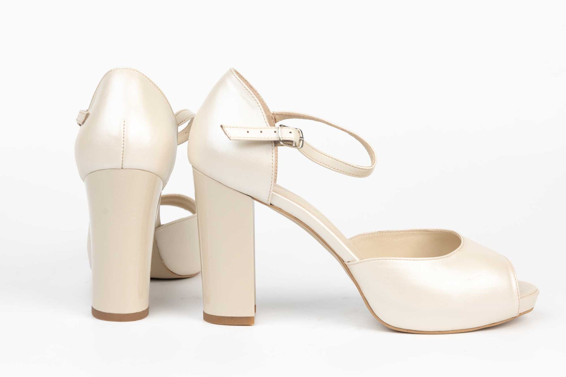 Pantofi mireasa decupați piele naturală PERLA 3314 Alb sidef