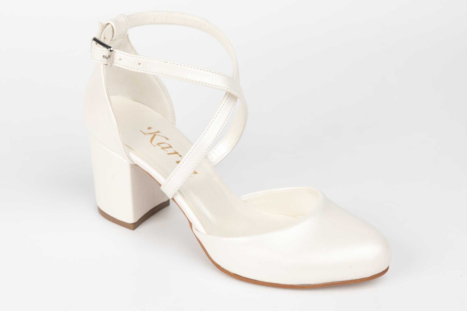 Pantofi mireasa decupați piele naturală PERLA 3314 Alb sidef
