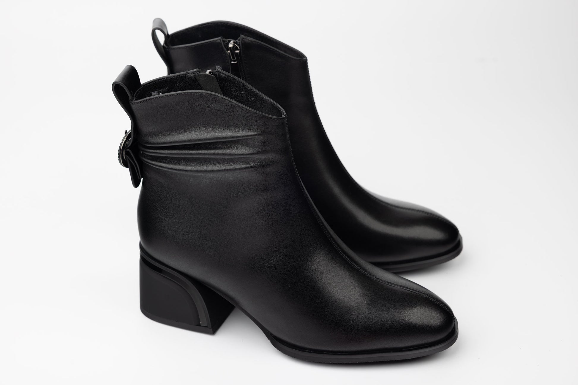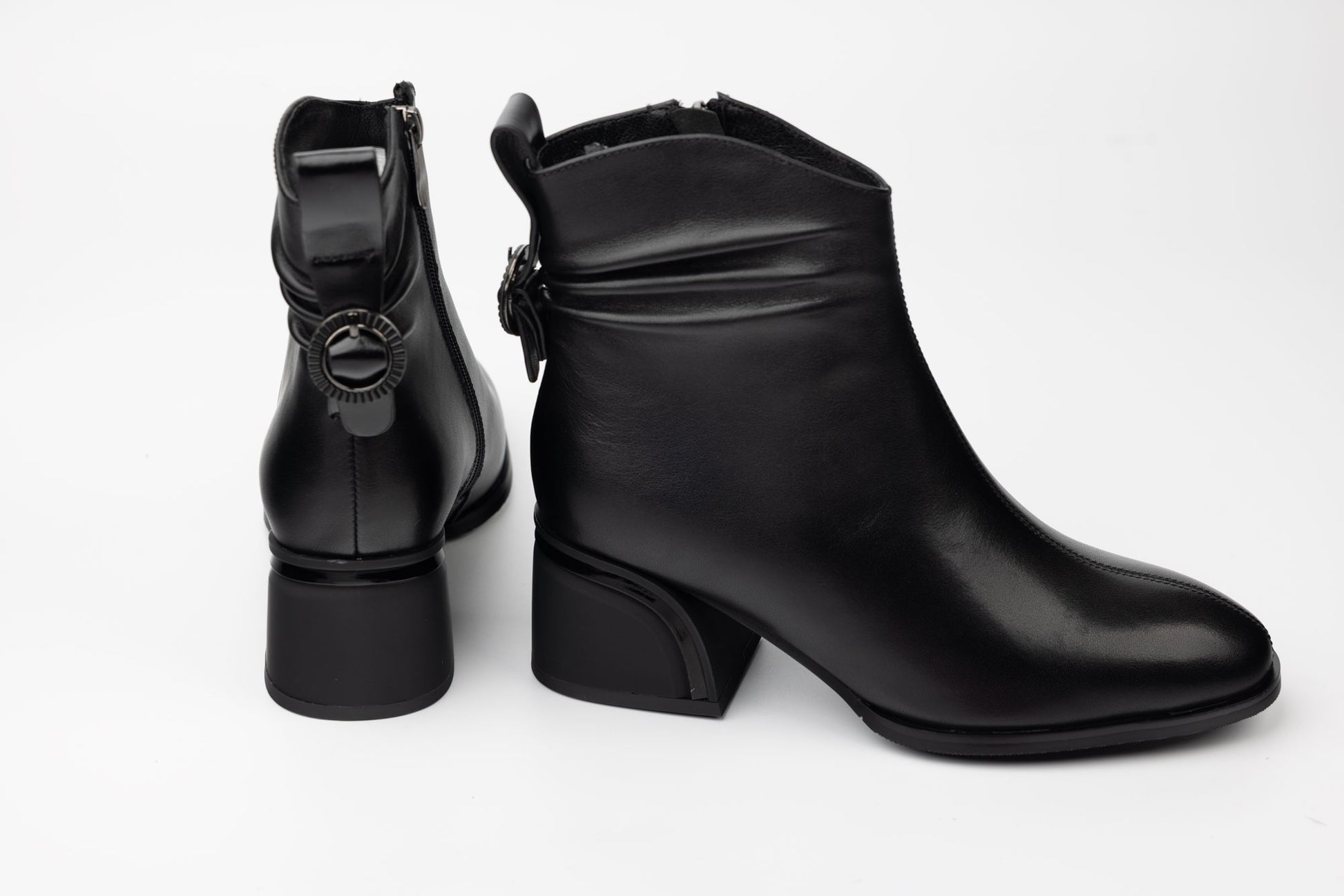 Ghete BETINA de dama din piele naturala impermeabila prevazuta cu fermoar lateral , blanita pe interior si un toc pătrat de 5,5 cm înălțime . Greutatea unei singure ghete este de 348 grame.Mărimi de la 35 până la 40.