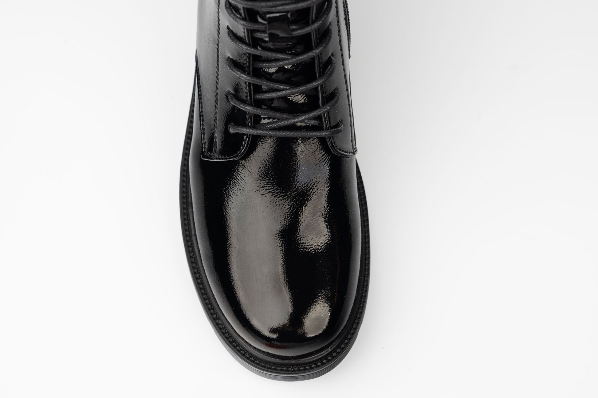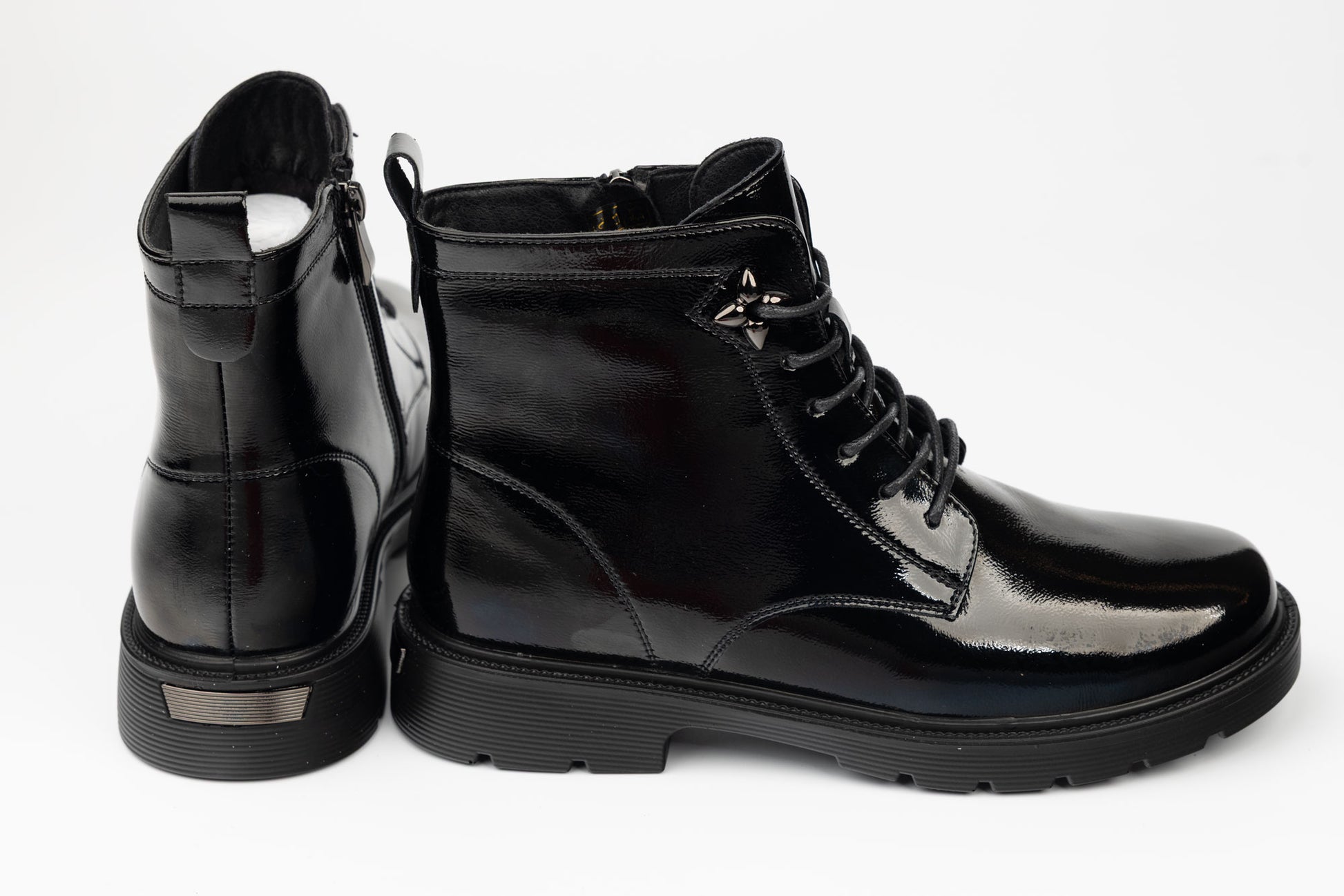 Ghete FORMAZIONE de dama din piele naturala lăcuită moale si cu siret elastic avand intr-o parte un fermoar. Talpa este marele secret fiindca este foarte moale si elastica avand la interior un brant cu memory foarte comod la purtare.