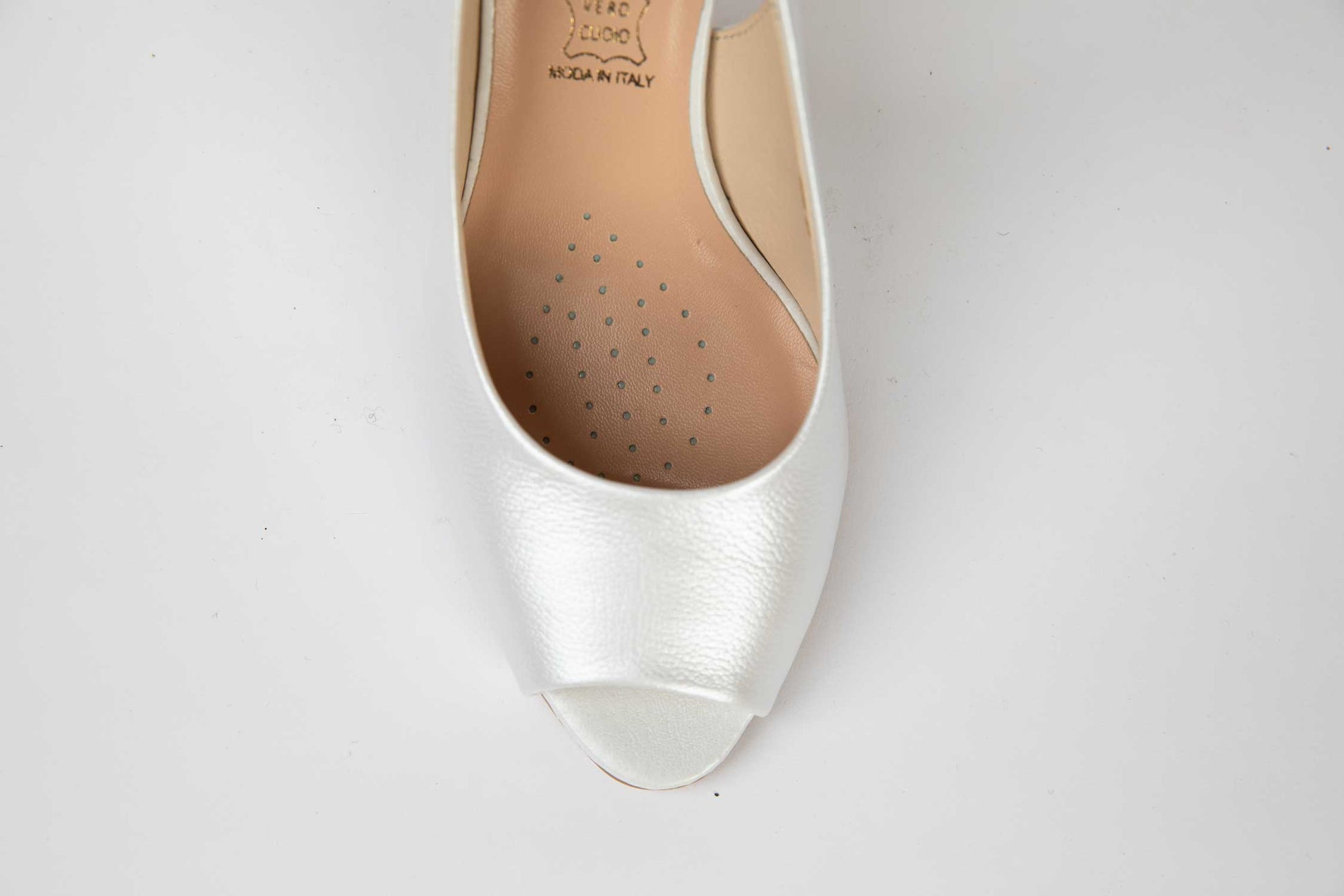 Pantofi mireasa decupați piele naturală PERLA 3314 Alb sidef