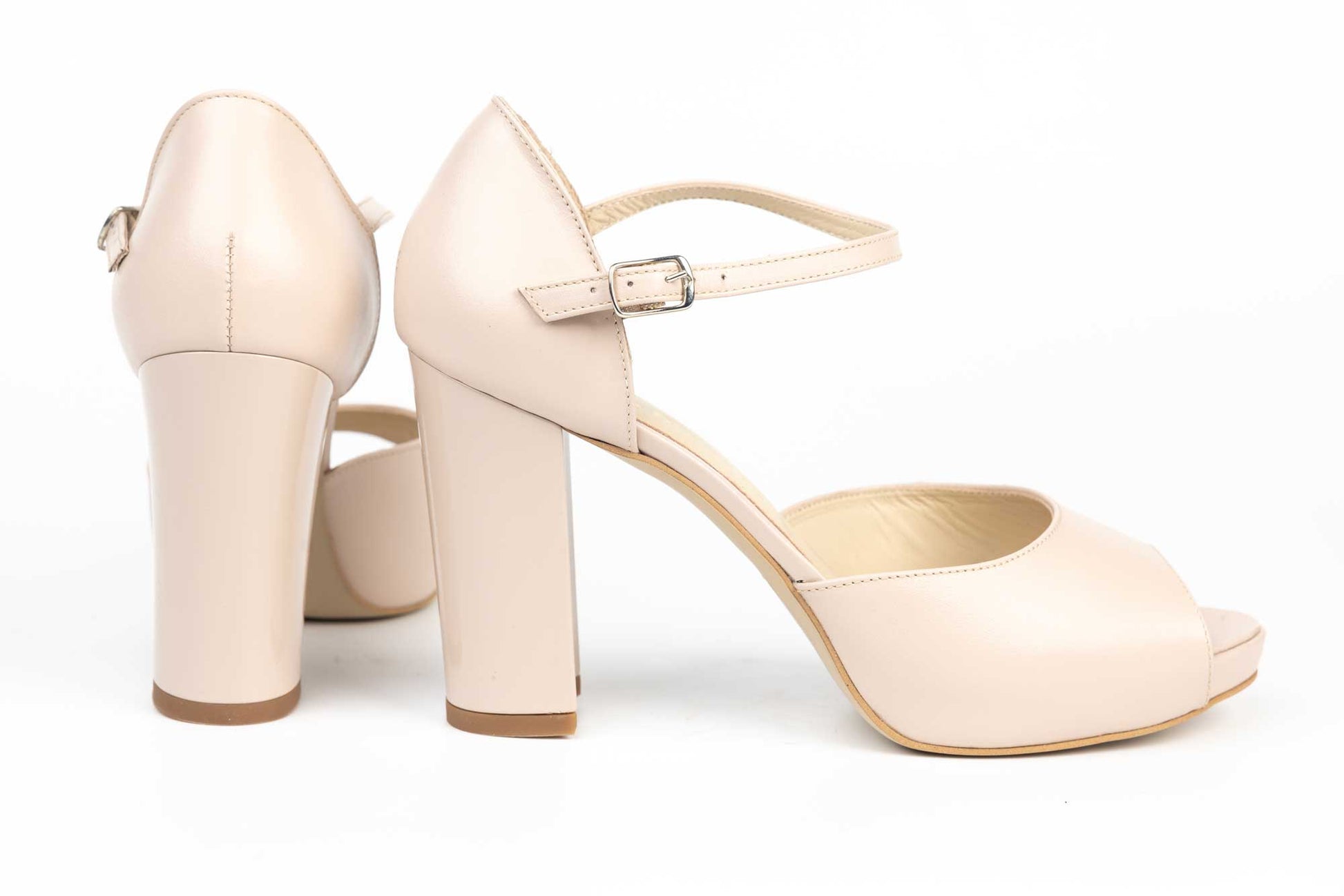 Sandale mireasa NINA OCHINNI de dama din piele naturală cu toc gros de 10 cm înălțime foarte stabil la mers având la partea din fata o platforma de 1 cm înălțime care conferă o înclinație lina și confortabila piciorului. Prinderea baretei se face cu o catarama fina.
