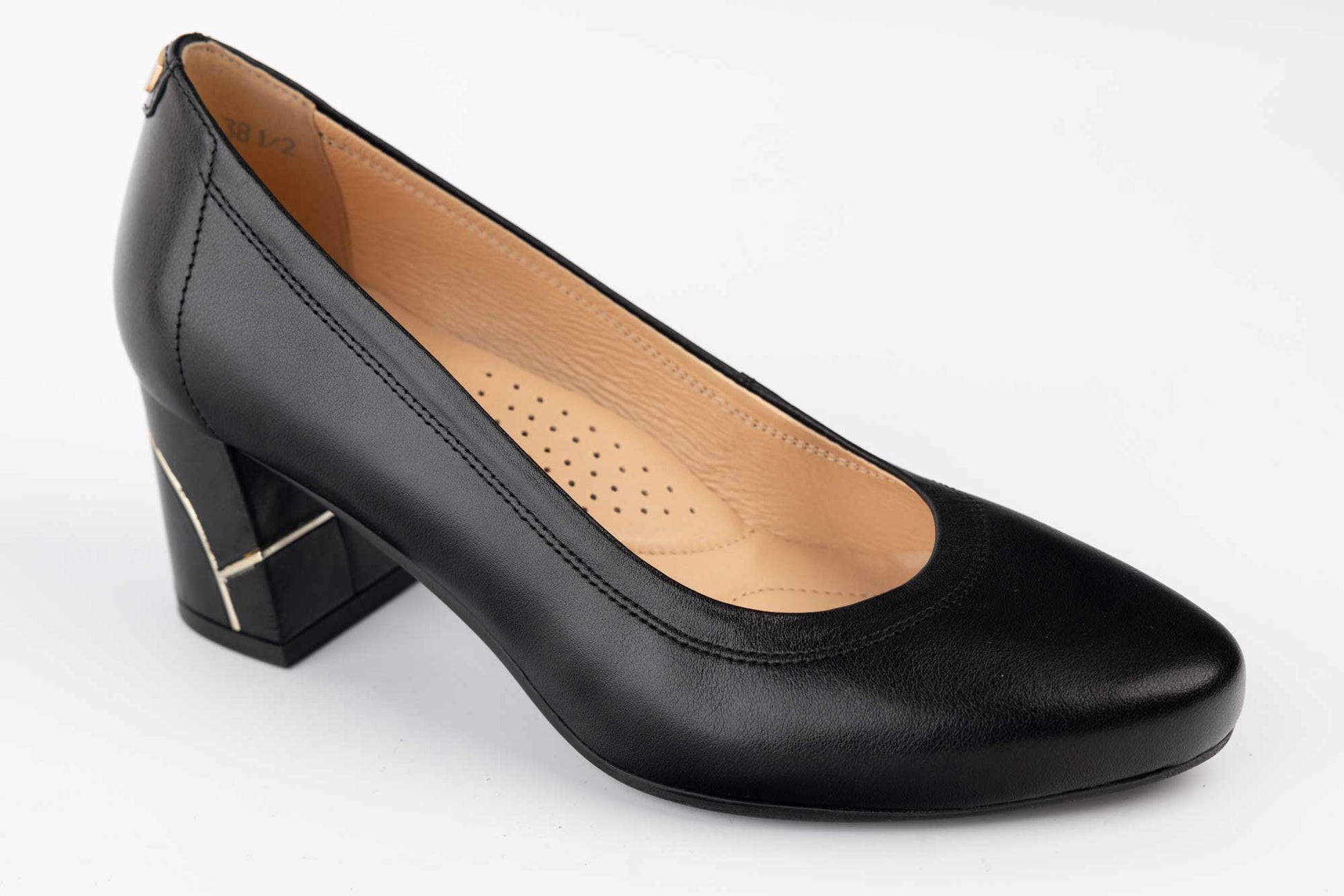 Pantofi PULSO de dama din piele naturala cu toc patrat de 6 cm inaltime. Pielea este foarte moale si ofera maximum de confort la purtare indelungata, talpa este usoara, flexibila iar pe interior detine un brant cu memory, având un calapod lat XXL special pentru picioare late sau cu mont. Greutatea unui singur picior este de 250 grame.