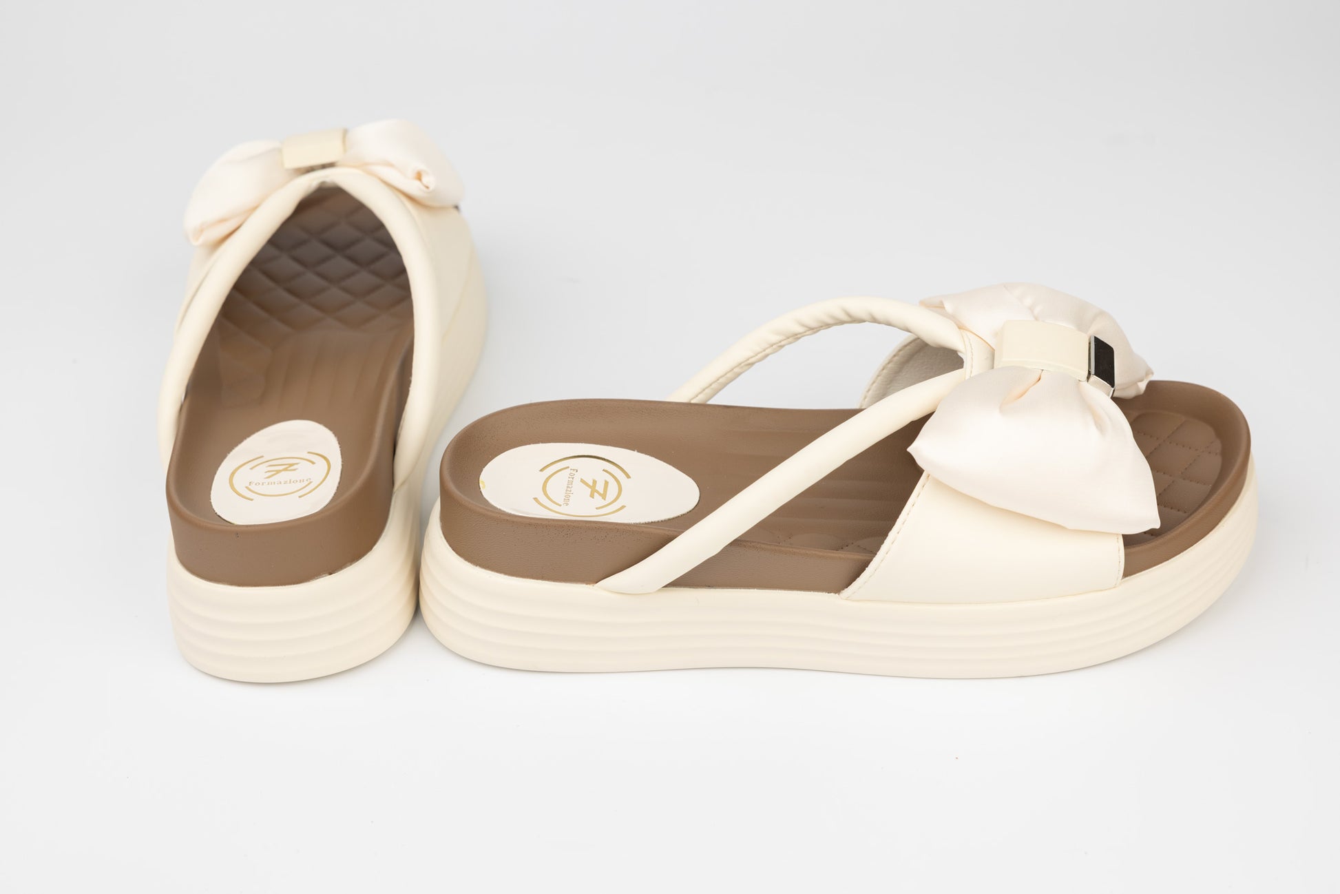 Slapi FORMAZIONE de dama din piele naturala accesorizata cu o fundiță avand talpa groasa de 4 cm foarte moale si elastica facand ca acest model sa fie unul foarte apreciat si comod la purtare indelungata. Greutatea unui singur slap este de 235 grame.