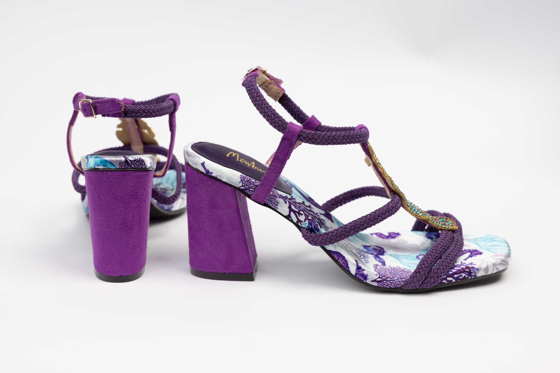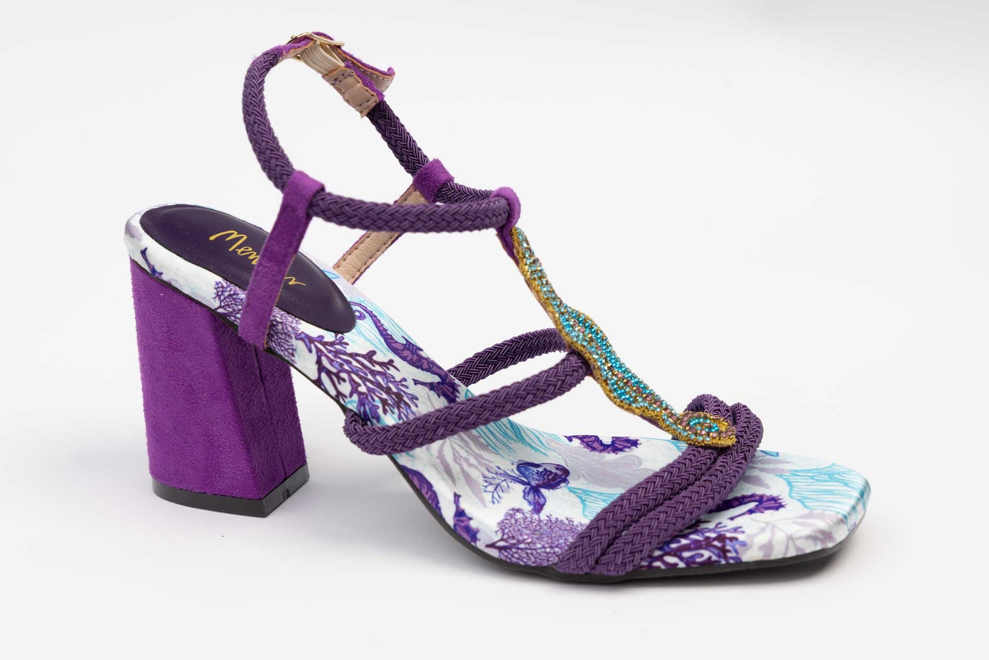 Sandale MENBUR dama din material de calitate premium cu toc de 8,5 cm oferind piciorului confortul necesar pentru purtare indelungata. Acest model este unul elegant fiind accesorizat in partea din fata cu cristale in forma unui calut de mare. Greutatea unui singur picior este de 225 grame.