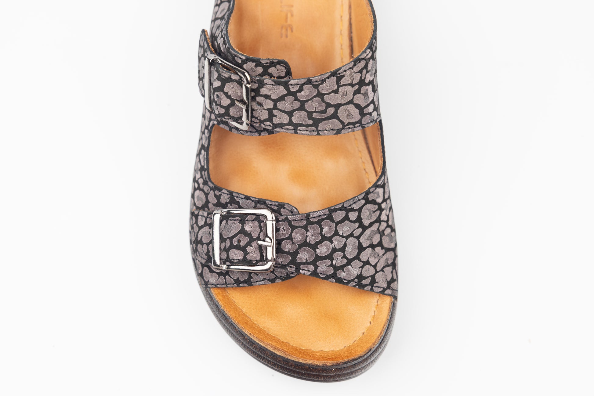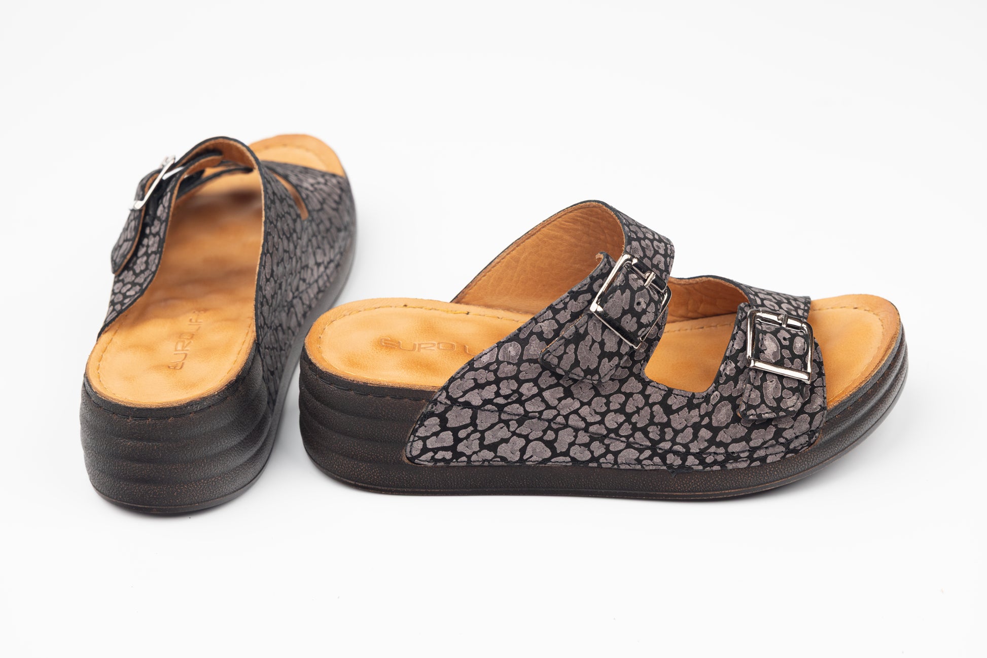 Șlapi dama LSD din piele naturala cu talpa groasa ortopedica captusite la interior cu piele naturala. Inclinatia lina a piciorului in aceste sandale face mult mai comoda purtarea lor un timp indelungat fiind recomandate chiar si pentru picioare cu mont pentru ca le acopera in intregime. Greutatea unui singur picior este de 150 grame. Mărimi de la 36 pana la 42.