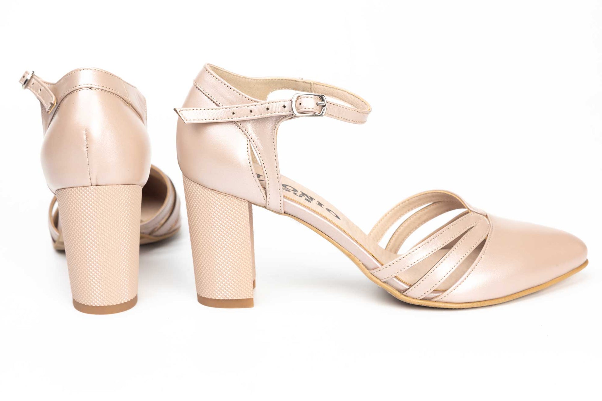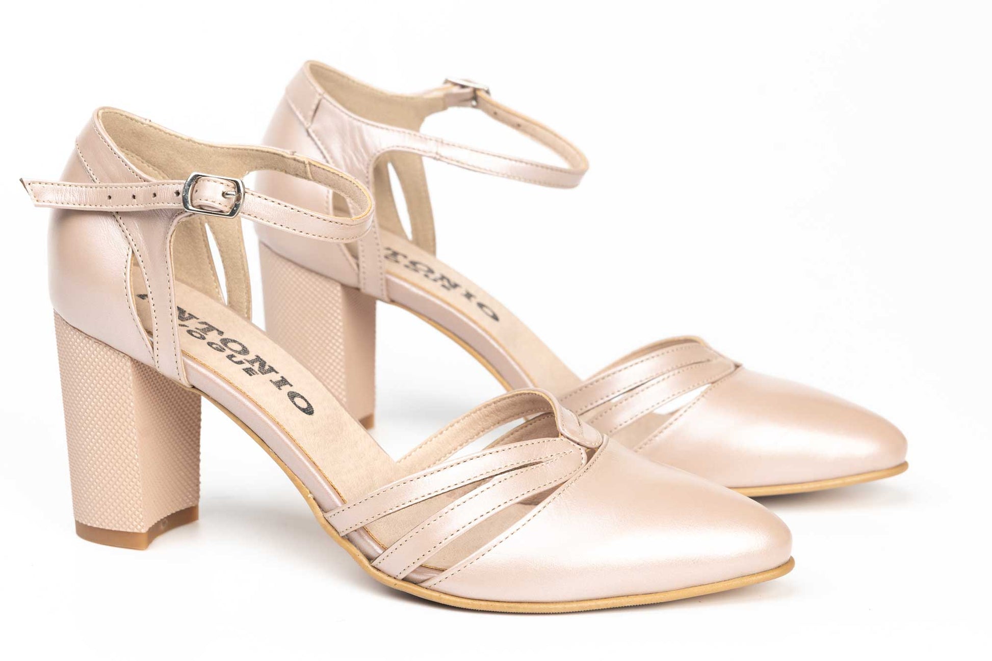 Pantofi ANTONIO de dama decupati din piele naturala cu prindere deasupra gleznei cu o bareta din piele avand tocul patrat de 7 cm. Greutatea unui singur picior este de 240 grame. Recomandat pentru doamne cu picior mai lat sau cu mont.