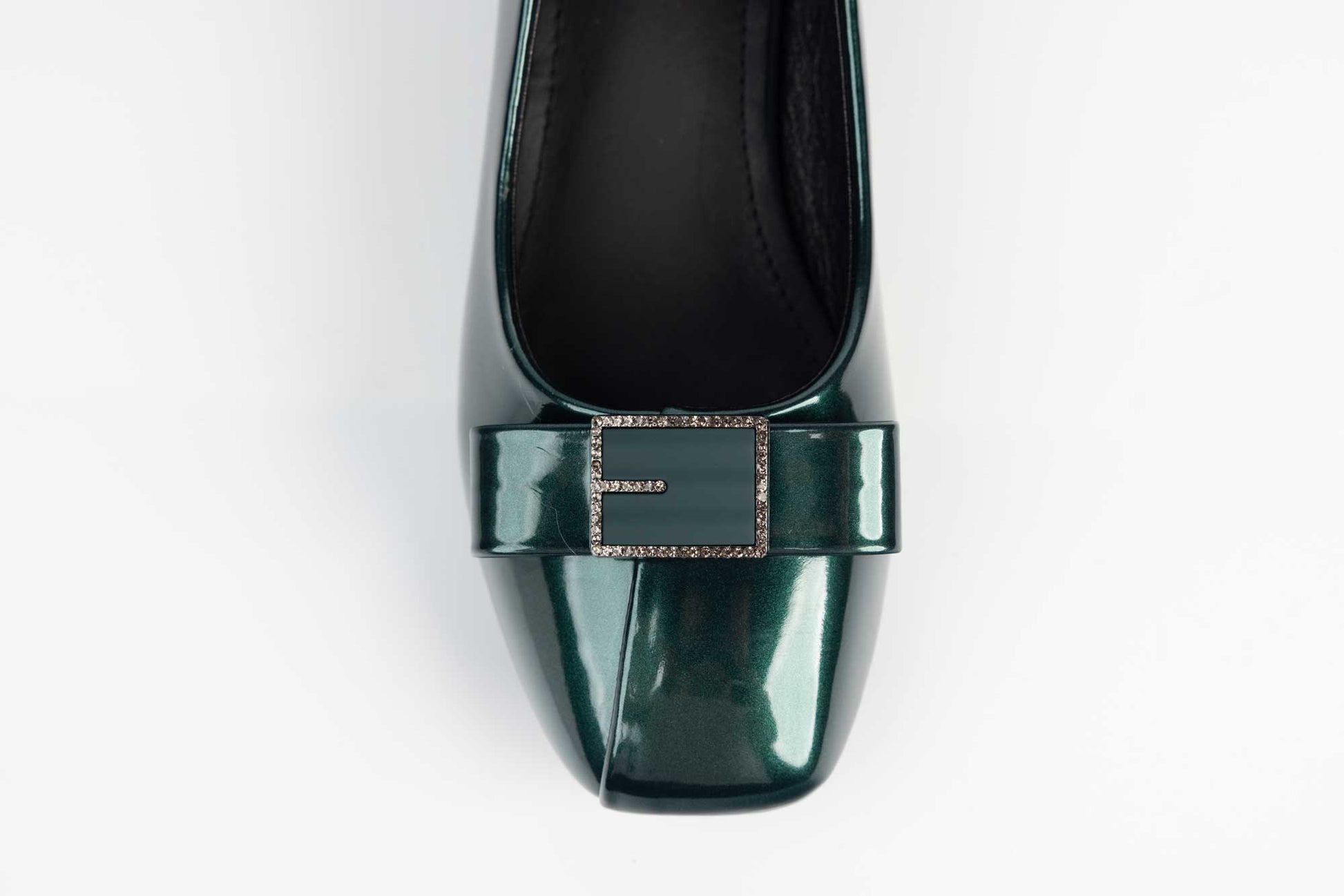 Pantofi FORMAZIONE de dama din piele naturala lacuita cu toc patrat de 5 cm inaltime simpli. Pielea este foarte moale si ofera maximum de confort la purtare indelungata, Talpa este usoara, flexibila iar pe interior detine un brant cu memory. Pe varful pantofului este montat un accesoriu metalic cu insertie de cristale finute.