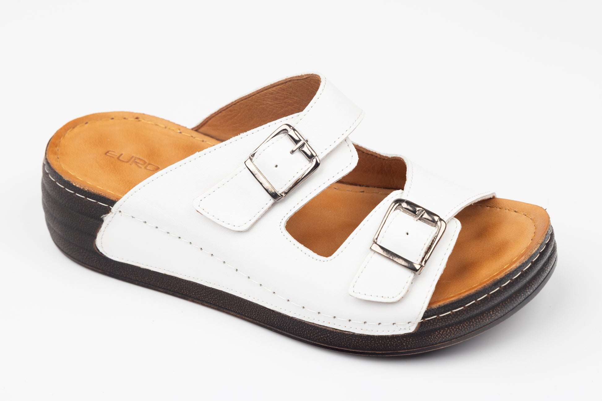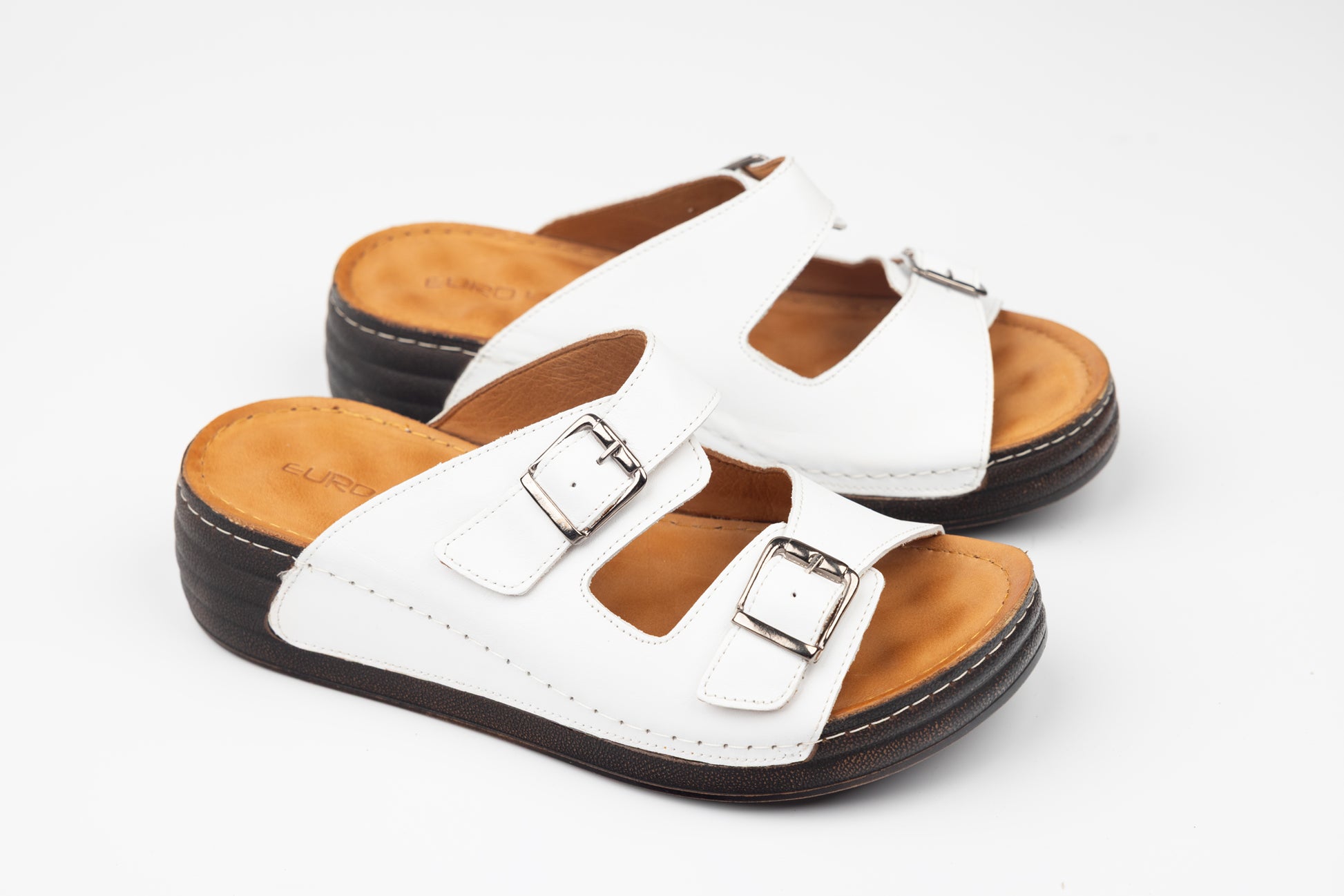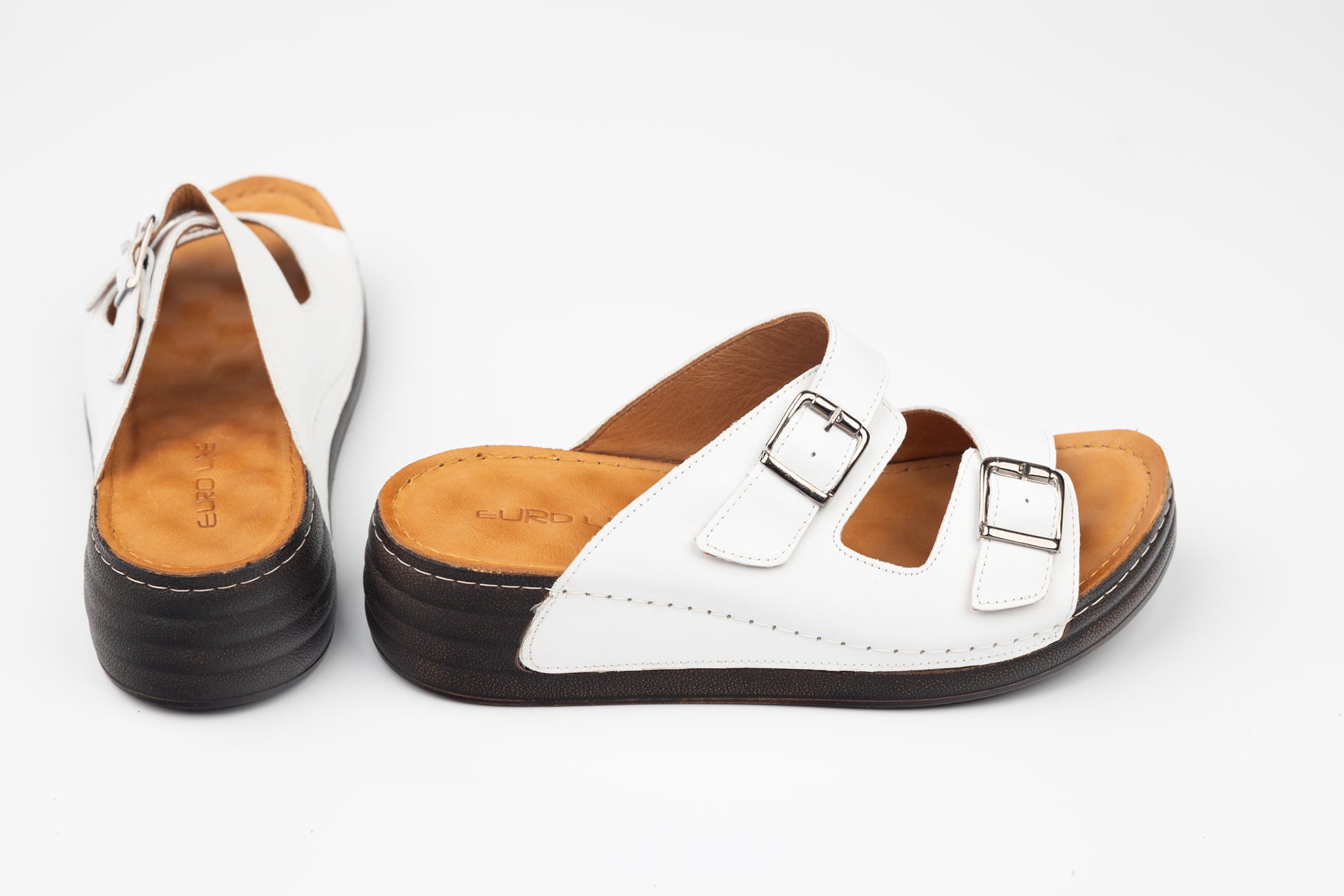 Șlapi dama LSD din piele naturala cu talpa groasa ortopedica captusite la interior cu piele naturala. Inclinatia lina a piciorului in aceste sandale face mult mai comoda purtarea lor un timp indelungat fiind recomandate chiar si pentru picioare cu mont pentru ca le acopera in intregime. Greutatea unui singur picior este de 150 grame. Mărimi de la 36 pana la 42.
