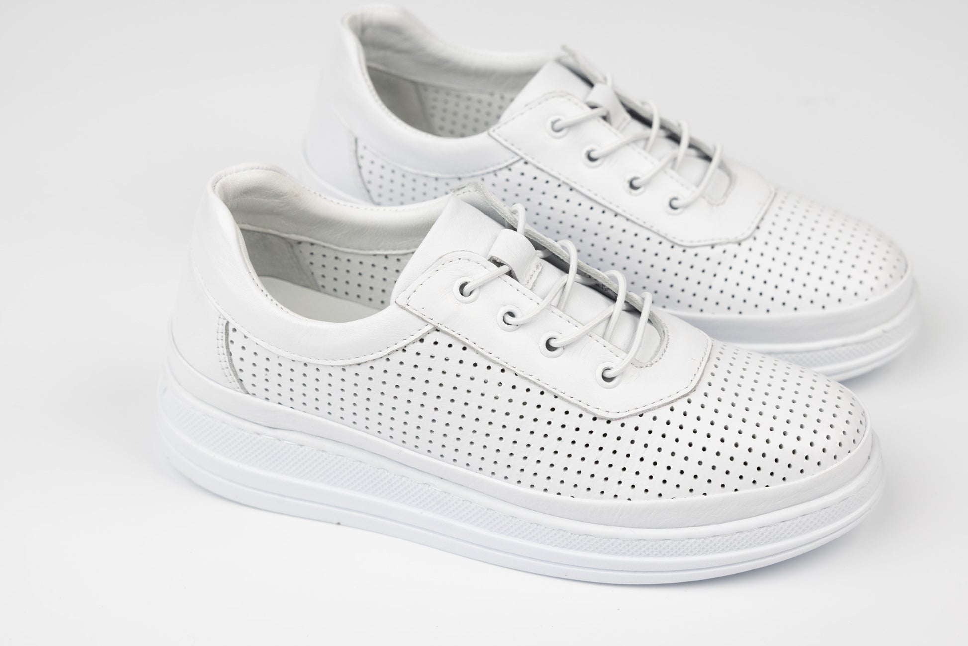 Pantofi mireasa decupați piele naturală PERLA 3314 Alb sidef