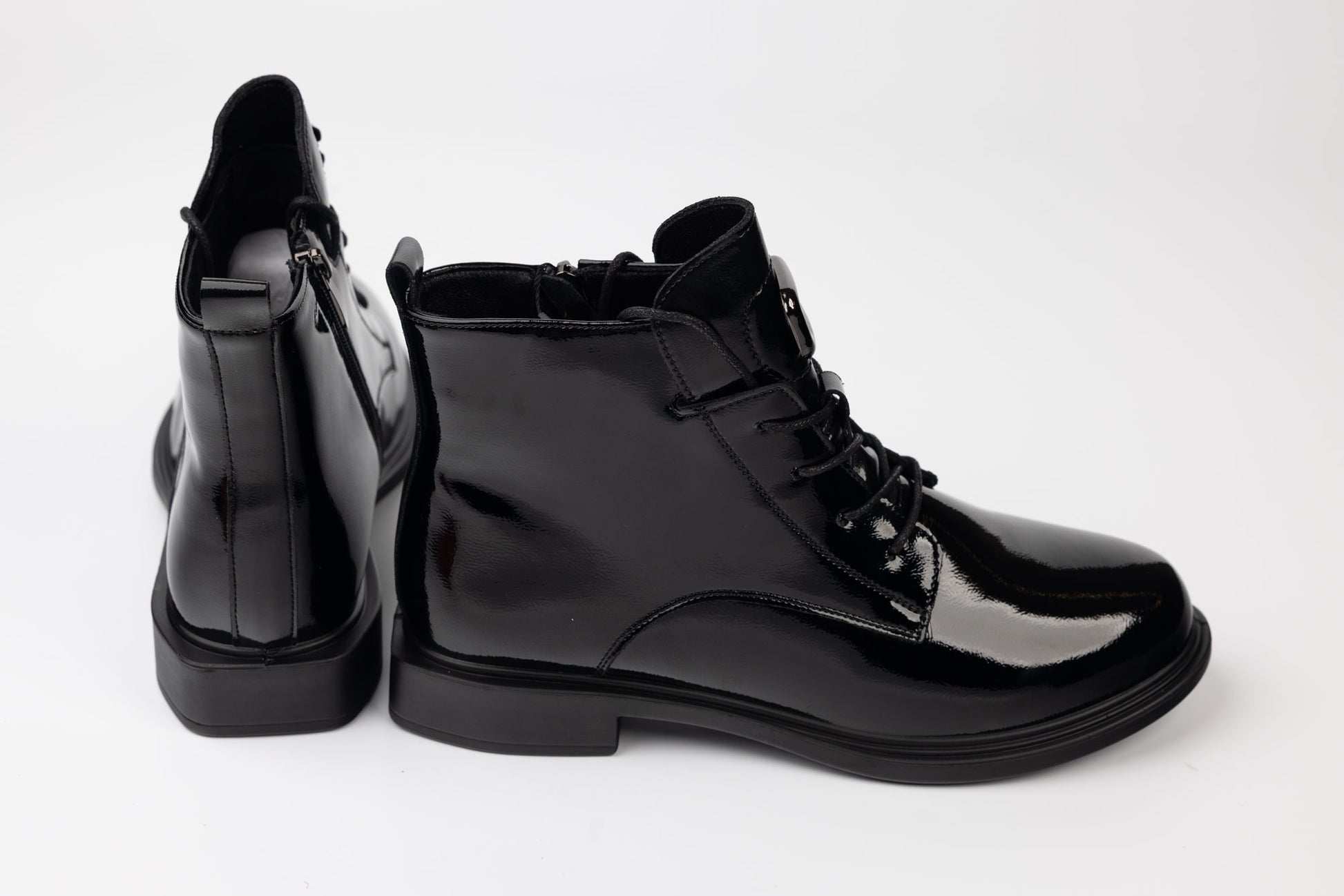 Ghete FORMAZIONE de dama din piele naturala lăcuită moale avand intr-o parte un fermoar. Talpa este marele secret fiindca este foarte comoda, avand la interior un brant cu memory foarte comod la purtare. Greutatea unui singur picior este de 349 grame. Marimi de la 36 la 40.