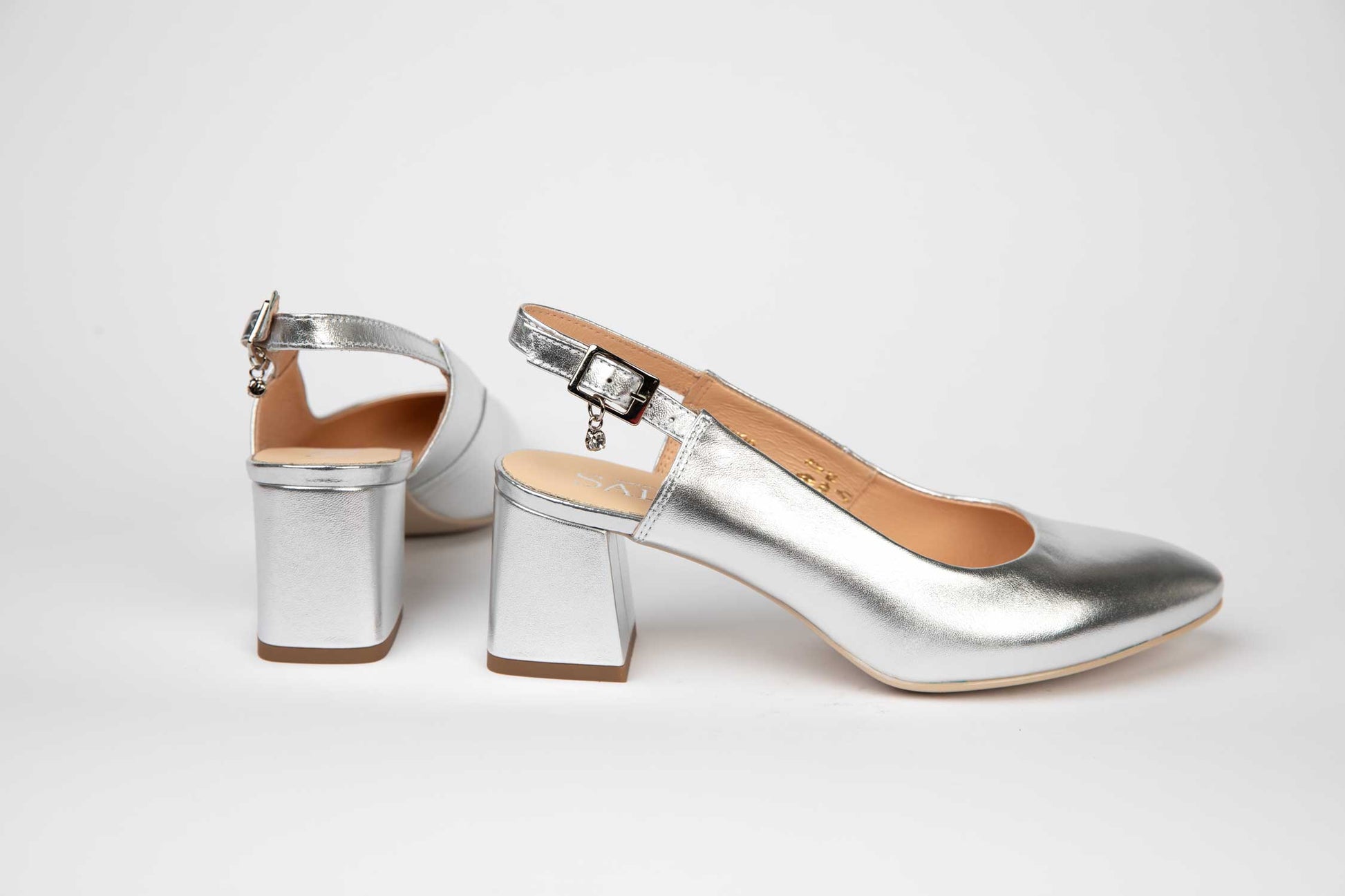 Linia de creatie SALA imbina corect designul elegant cu un confort potrivit datorita calapodului, inclinatiei si o piele naturala de inalta calitate folosita pentru modelele simple intr-o multitudine de culori,texturi si variante la care se adauga tocul gros mediu testat sa potriveasca oricarei femei. Prinderea se face cu o bareta de piele cu o catarama deasupra calcaiului.