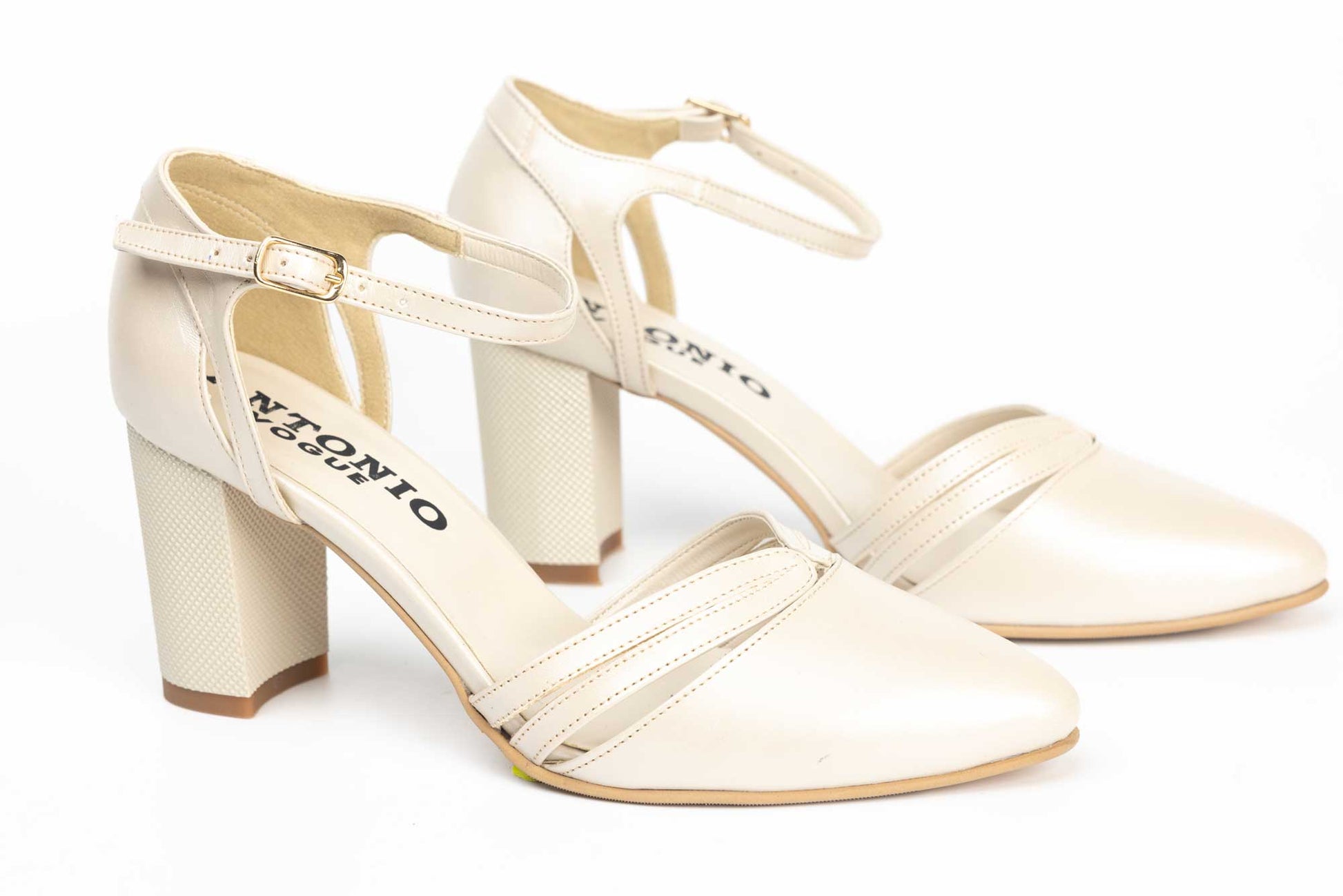 Pantofi ANTONIO de dama decupati din piele naturala cu prindere deasupra gleznei cu o bareta din piele avand tocul patrat de 7 cm. Greutatea unui singur picior este de 240 grame. Recomandat pentru doamne cu picior mai lat sau cu mont.