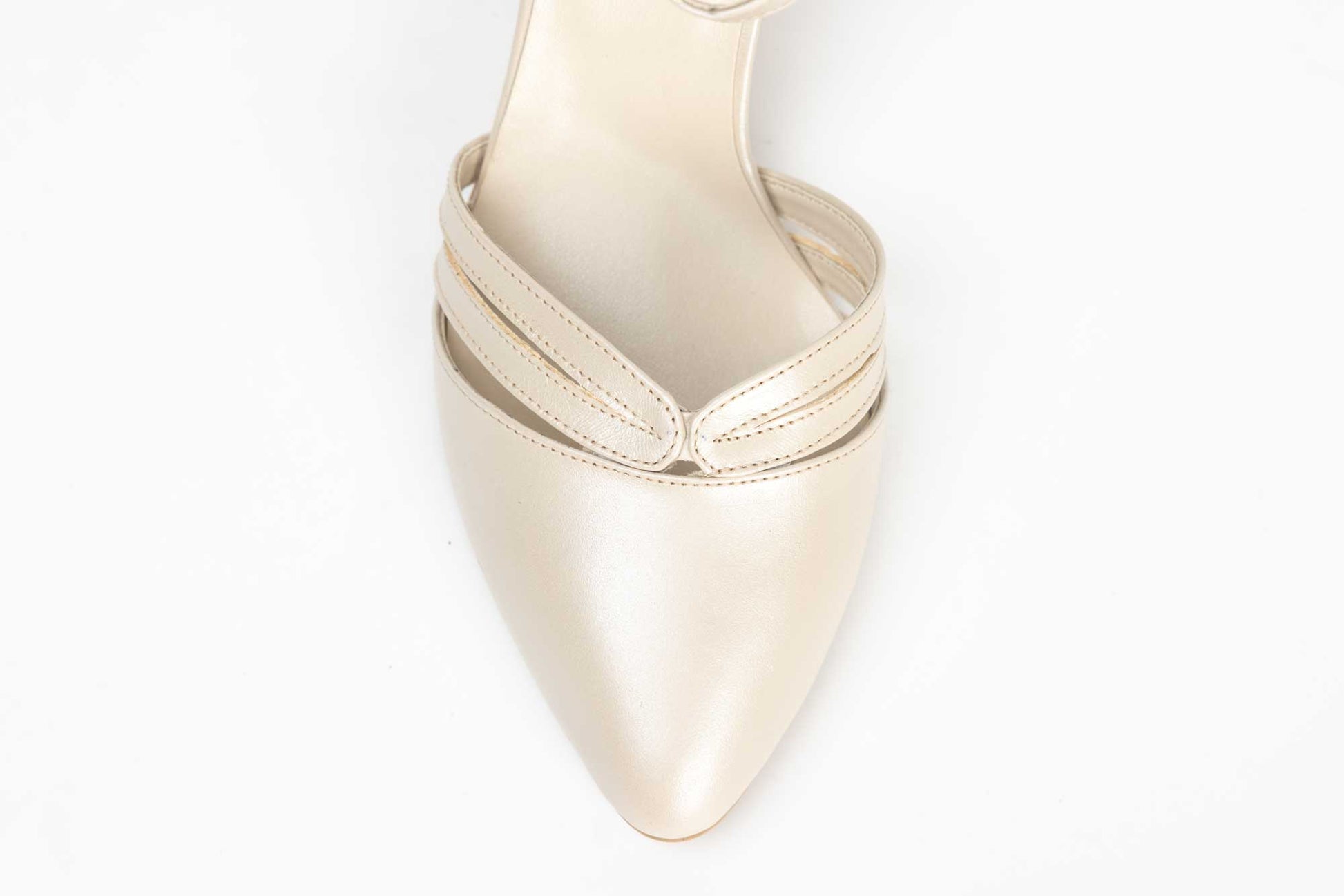 Pantofi mireasa decupați piele naturală PERLA 3314 Alb sidef