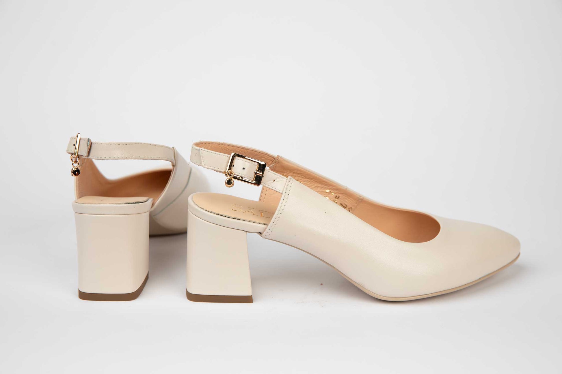 Linia de creatie SALA imbina corect designul elegant cu un confort potrivit datorita calapodului, inclinatiei si o piele naturala de inalta calitate folosita pentru modelele simple intr-o multitudine de culori,texturi si variante la care se adauga tocul gros mediu testat sa potriveasca oricarei femei. Prinderea se face cu o bareta de piele cu o catarama deasupra calcaiului.