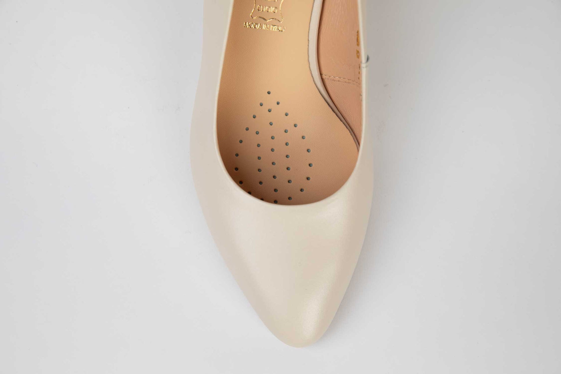 Pantofi mireasa decupați piele naturală PERLA 3314 Alb sidef