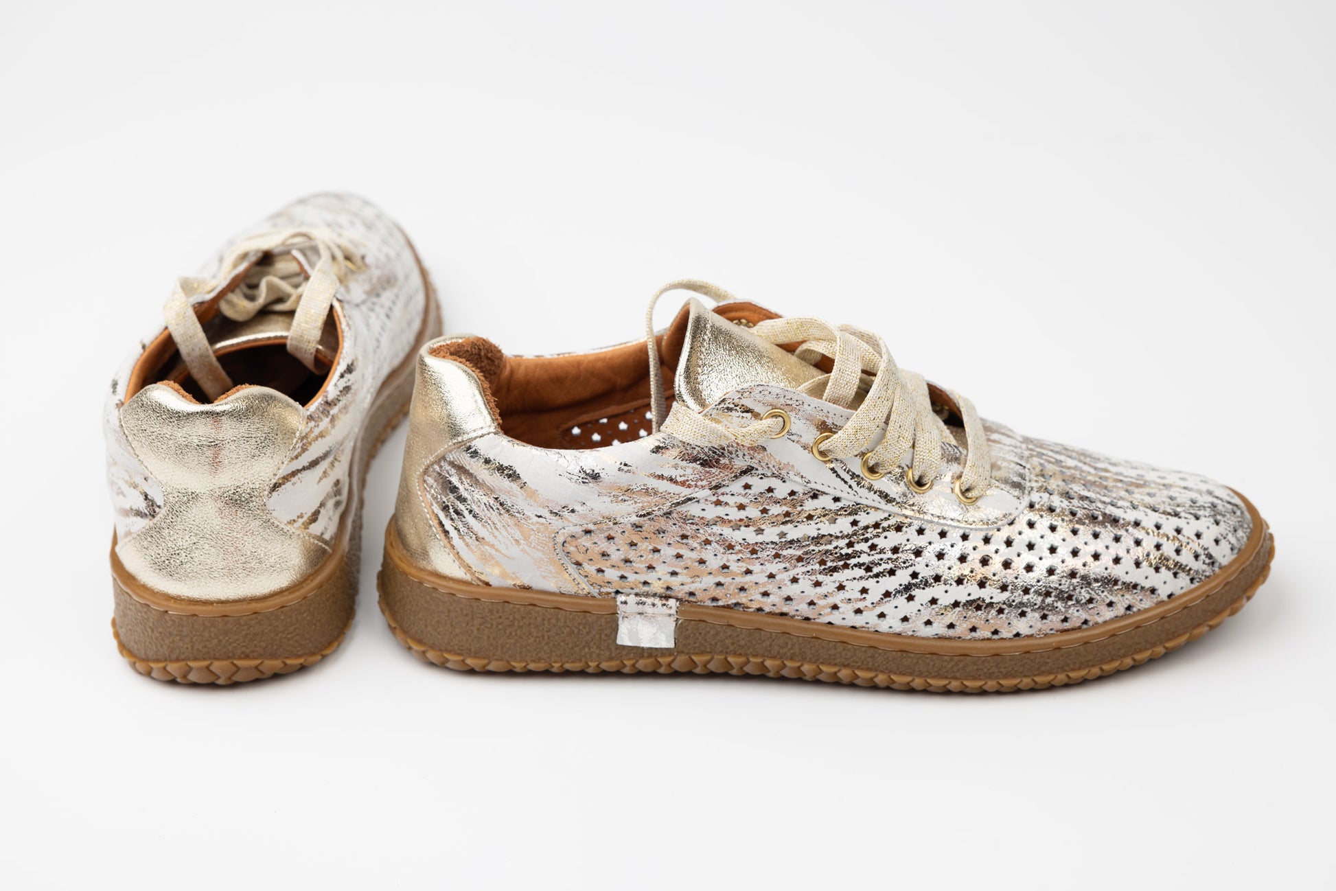Pantofi dama piele naturală perforata 04 Alb auriu