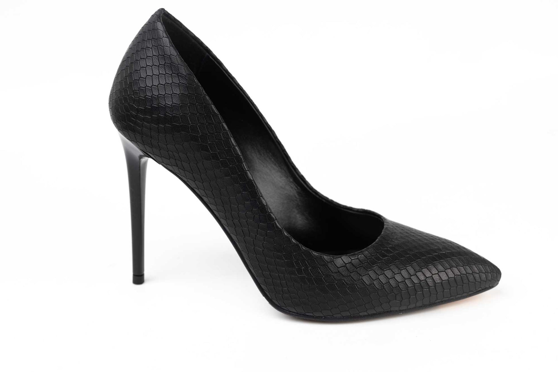 Pantofi BOTTA de dama simplu din piele naturala croco simplu si clasic cu toc stiletto de 10 cm inaltime cu varful ascutit. Greutatea unui singur picior este de 195 grame.