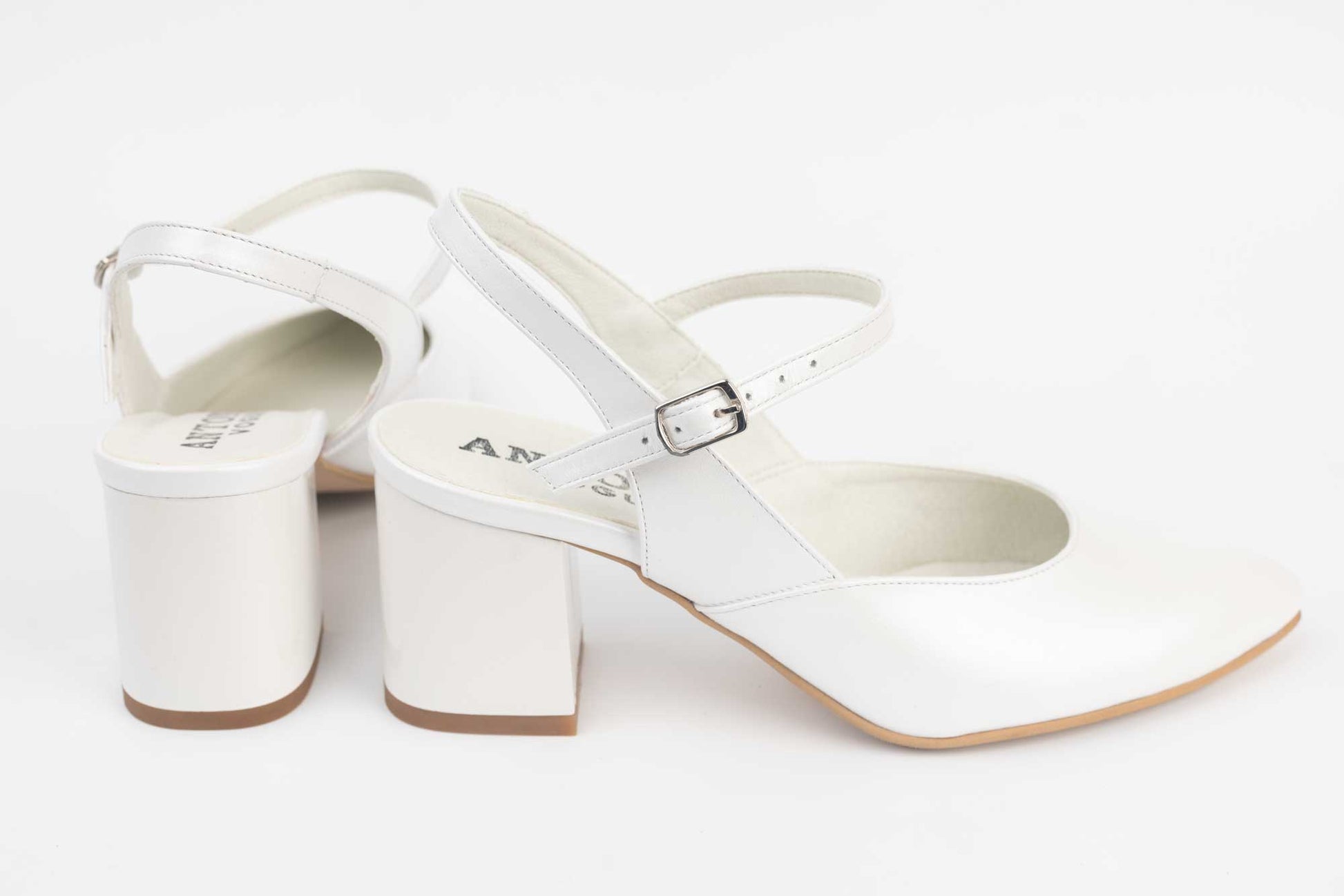 Pantofi mireasa decupați piele naturală PERLA 3314 Alb sidef