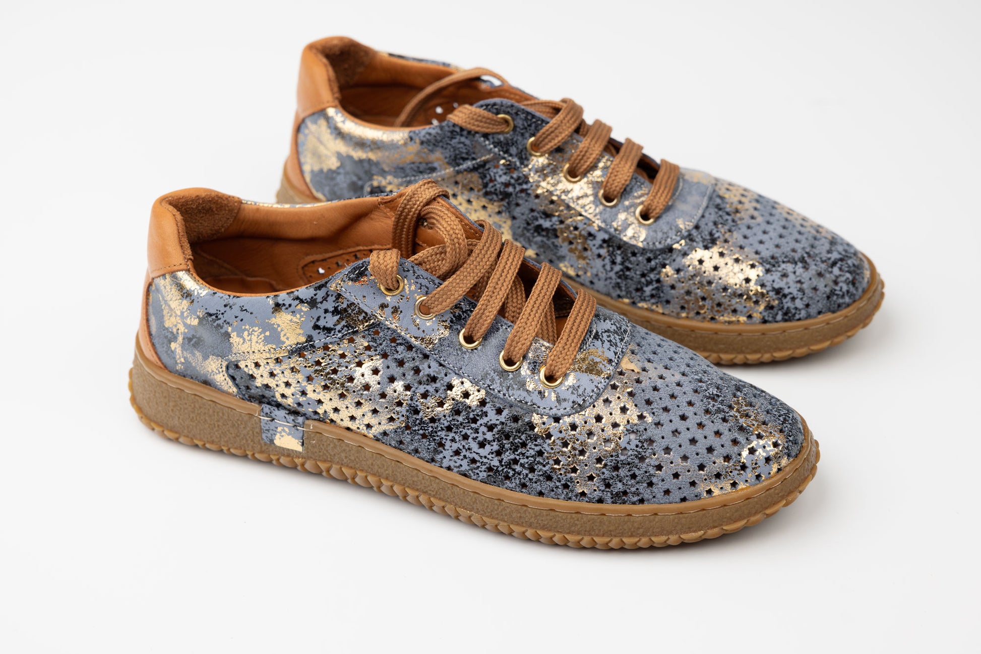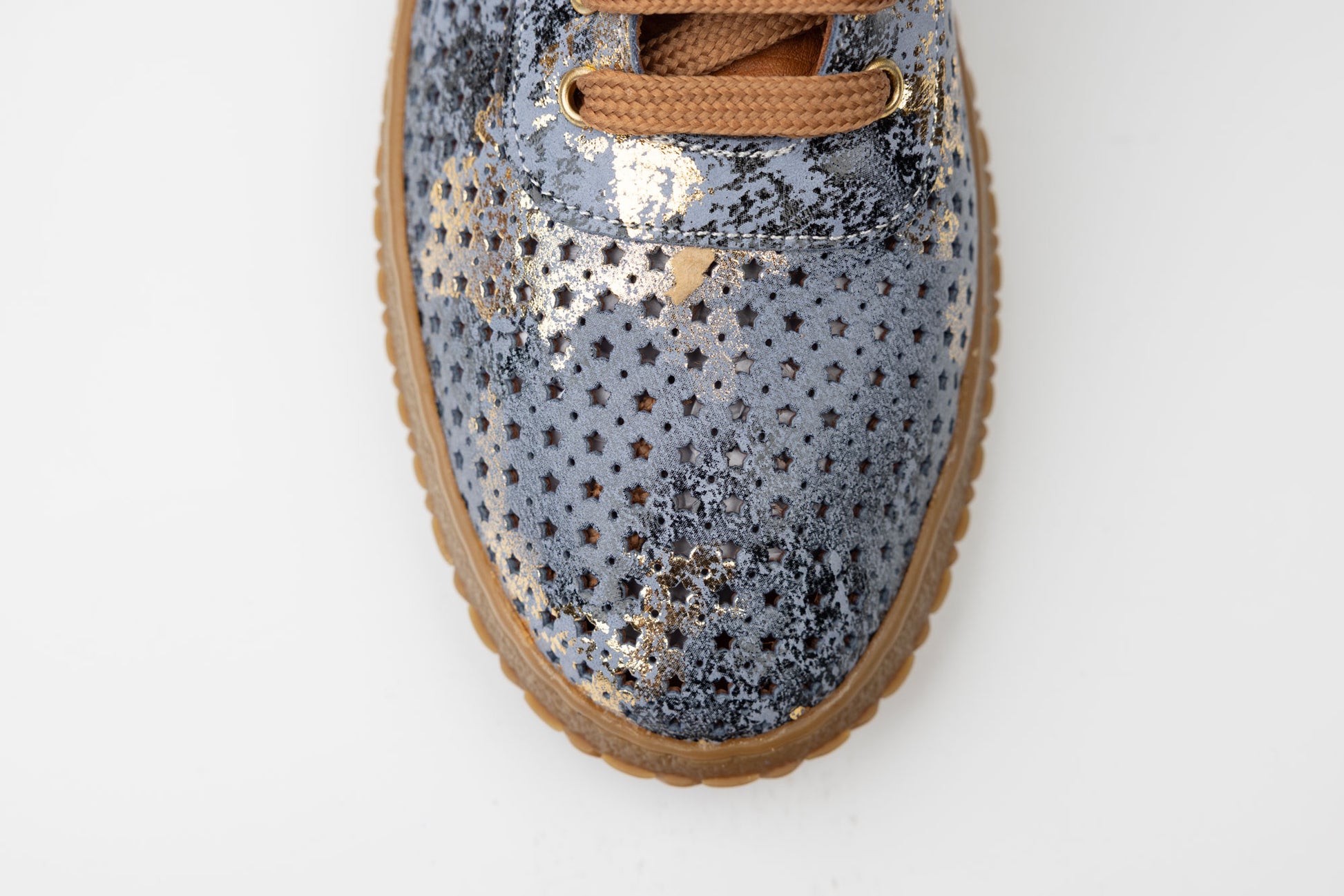 Pantofi dama piele naturală perforata LSD 04 Blue auriu