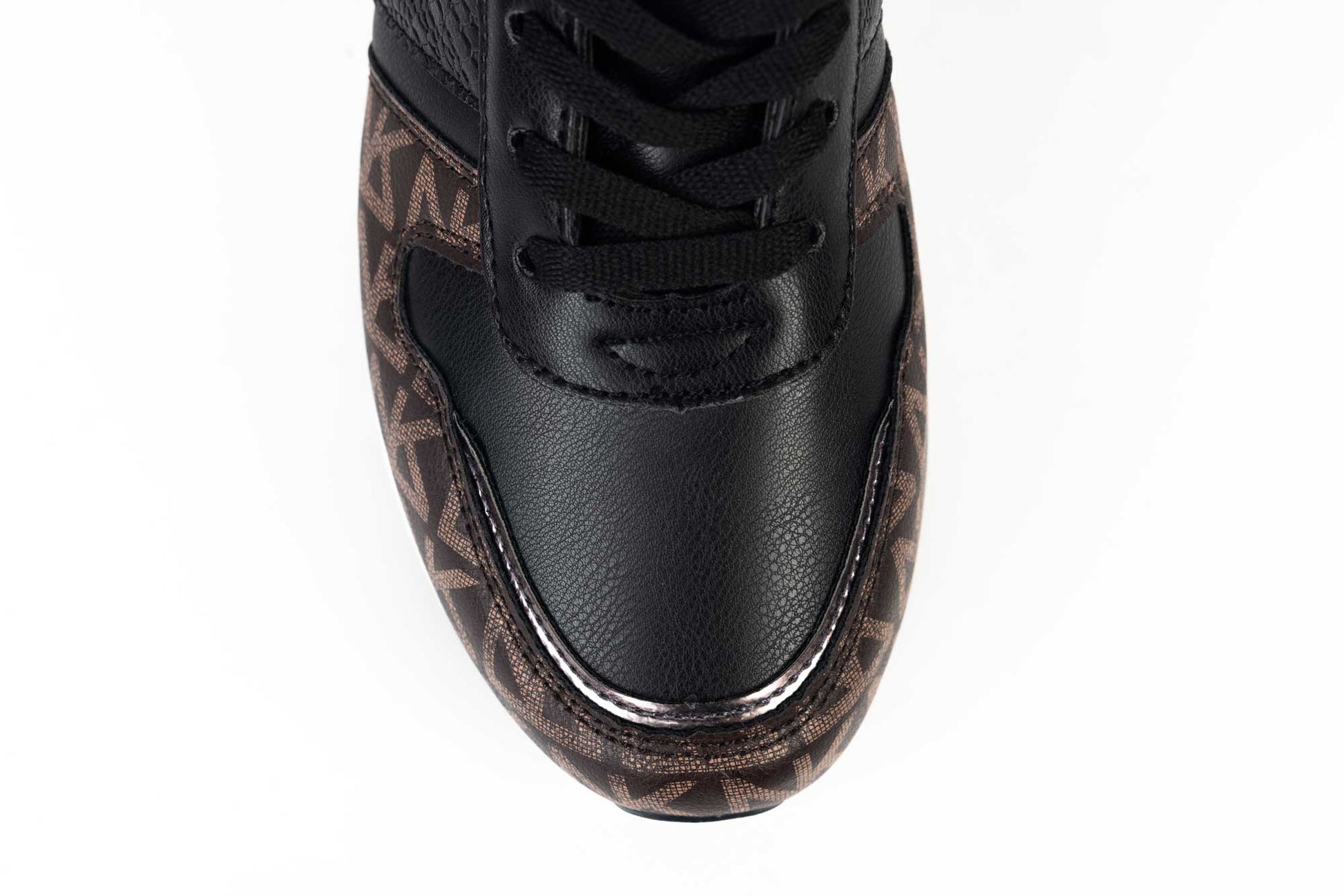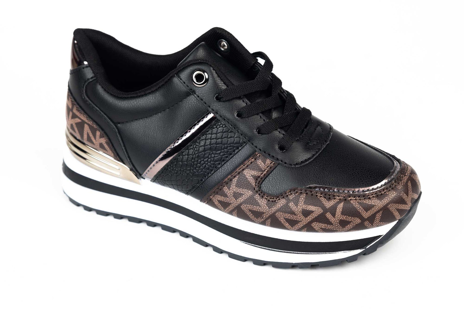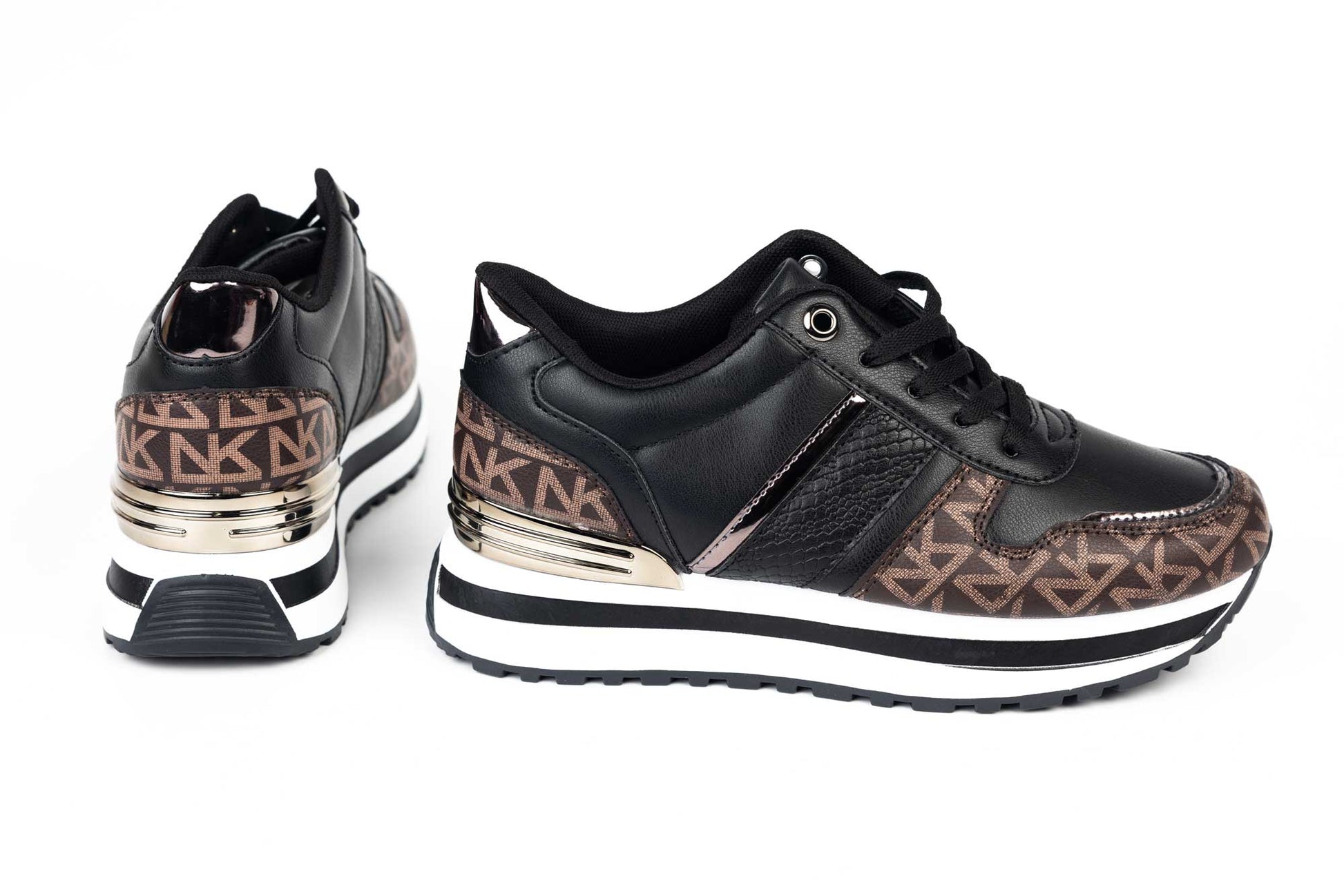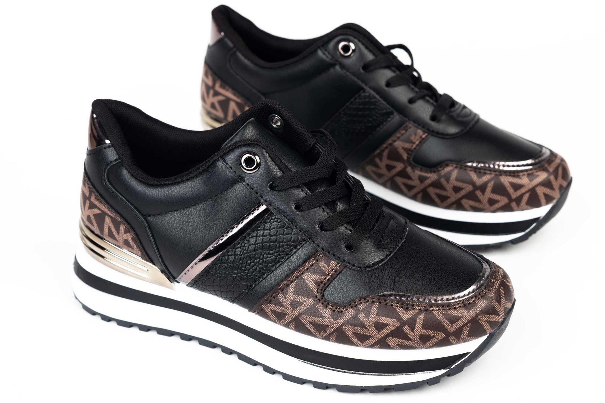 Adidasi dama M-M din piele ecologică cu talpa groasa de 5 cm înălțime care se leagă cu siret elastic având vârful rotunjit. Greutatea unui singur picior este de 290 grame.