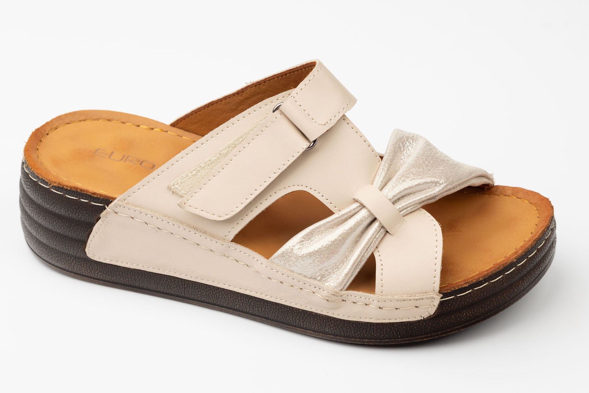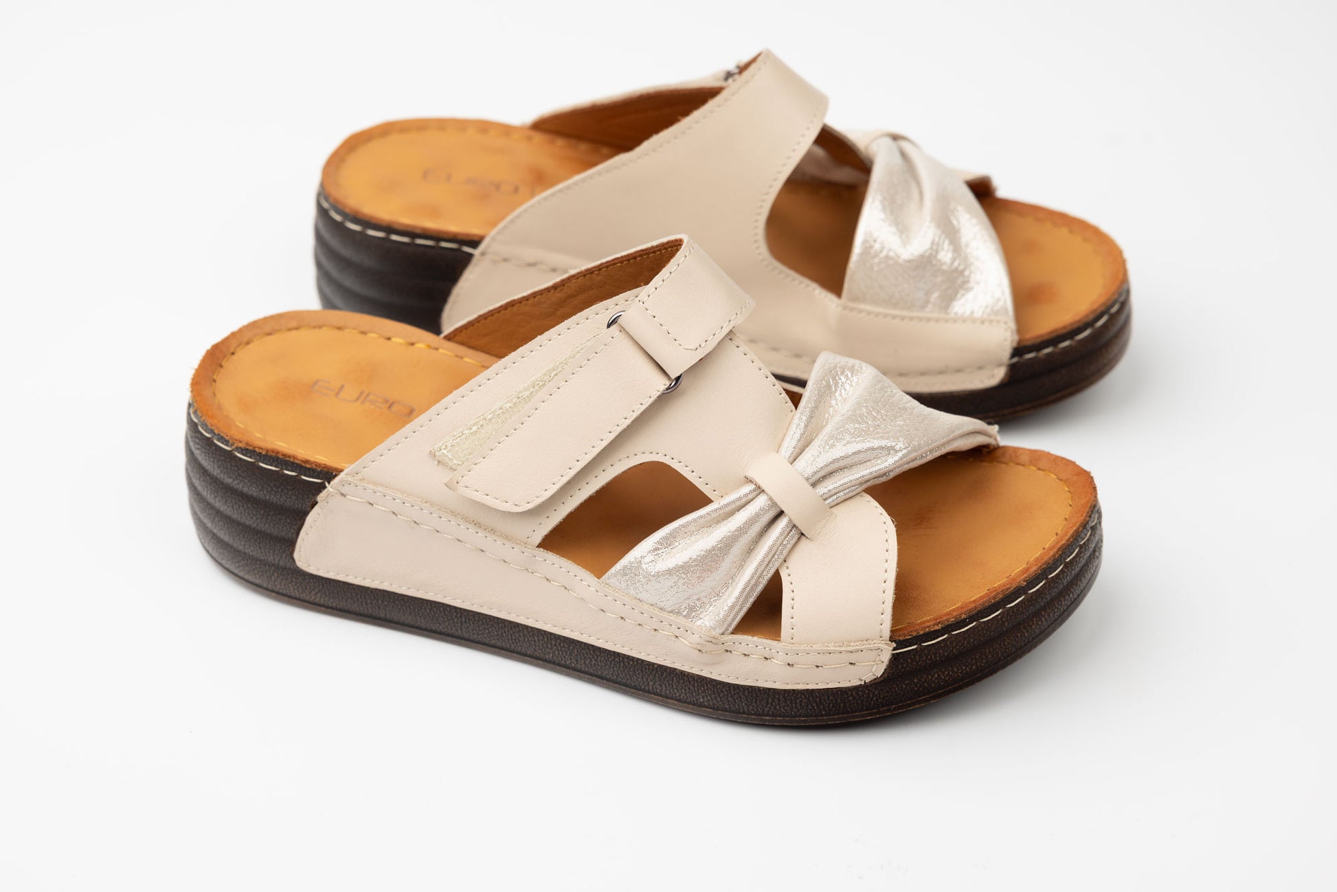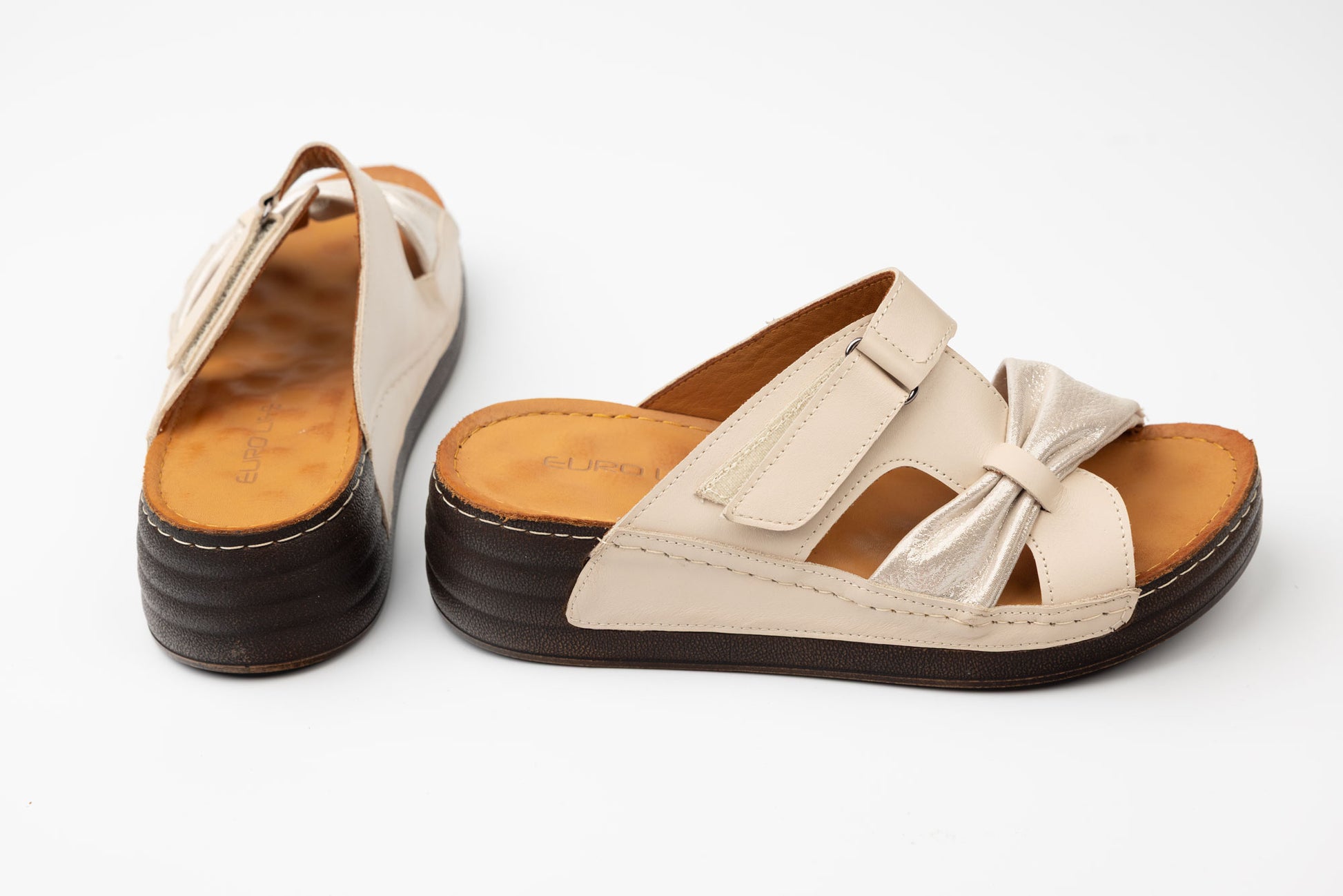 Șlapi dama LSD din piele naturala cu talpa groasa ortopedica captusite la interior cu piele naturala. Inclinatia lina a piciorului in aceste sandale face mult mai comoda purtarea lor un timp indelungat fiind recomandate chiar si pentru picioare cu mont pentru ca le acopera in intregime. Greutatea unui singur picior este de 150 grame. Mărimi de la 36 pana la 42.