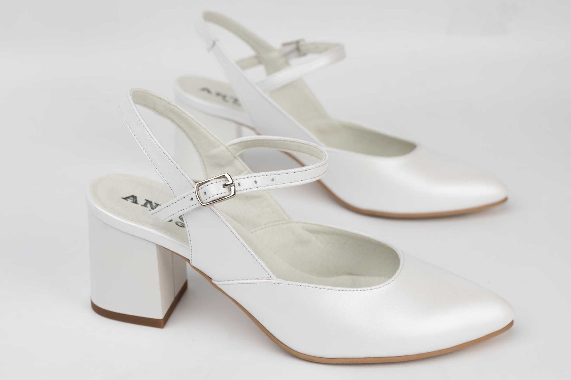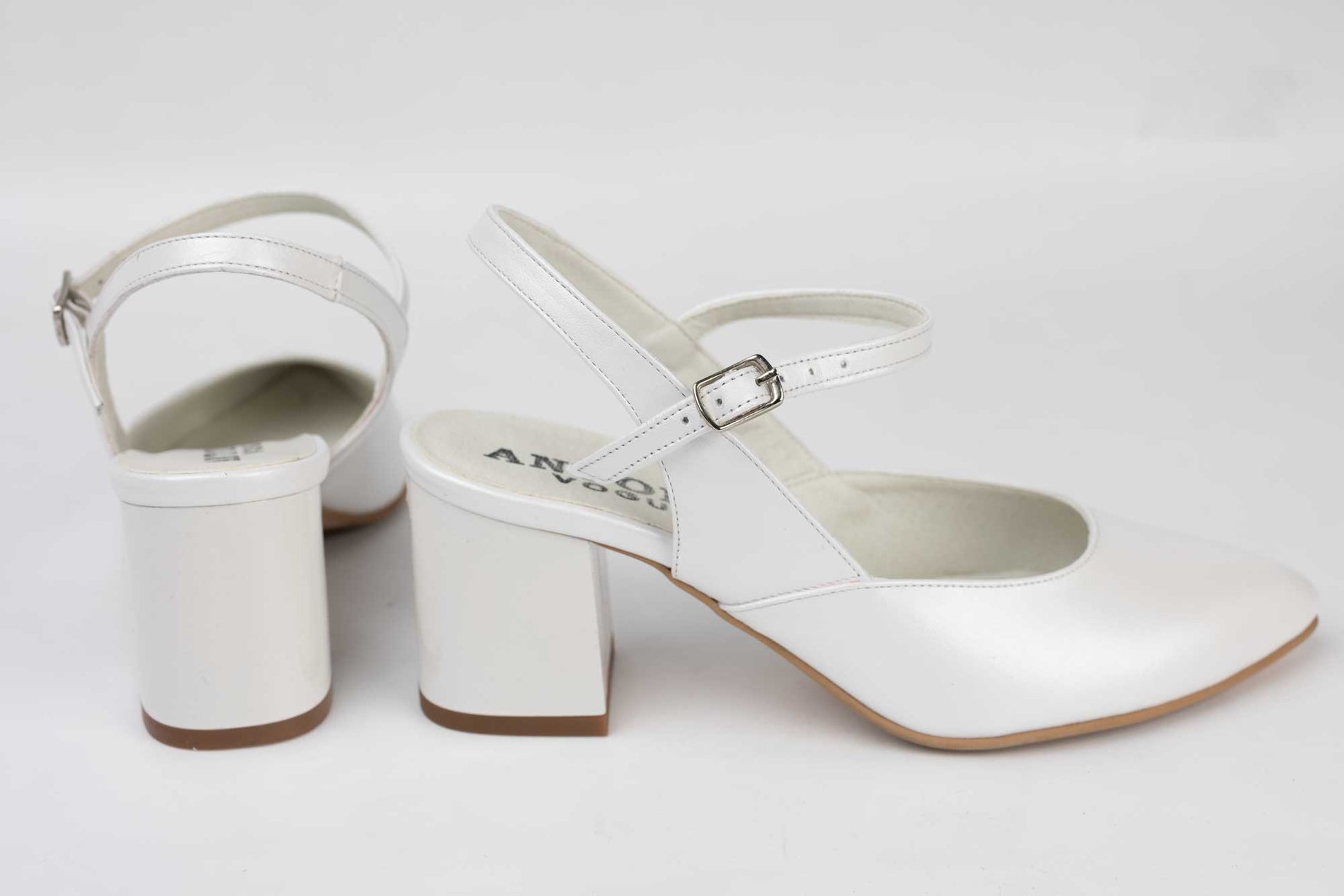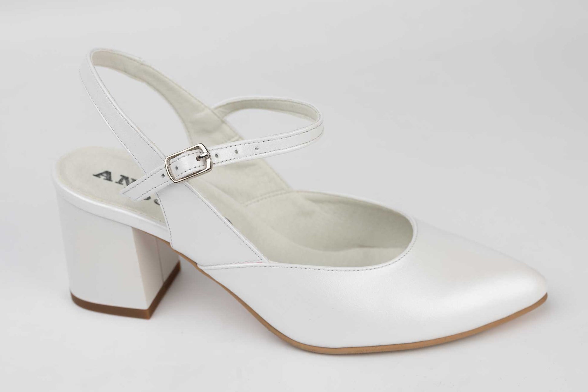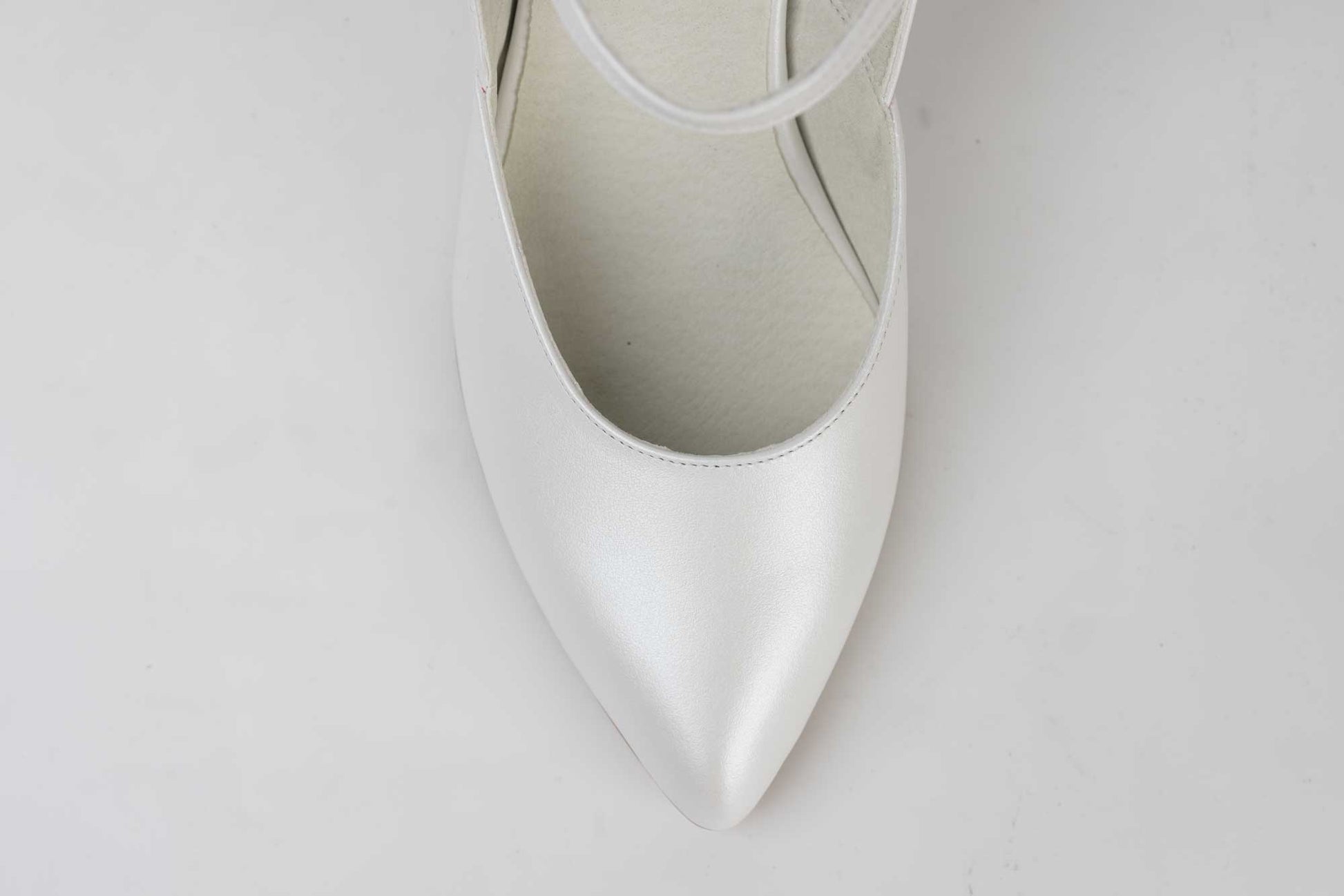 Pantofi mireasa decupați piele naturală PERLA 3314 Alb sidef